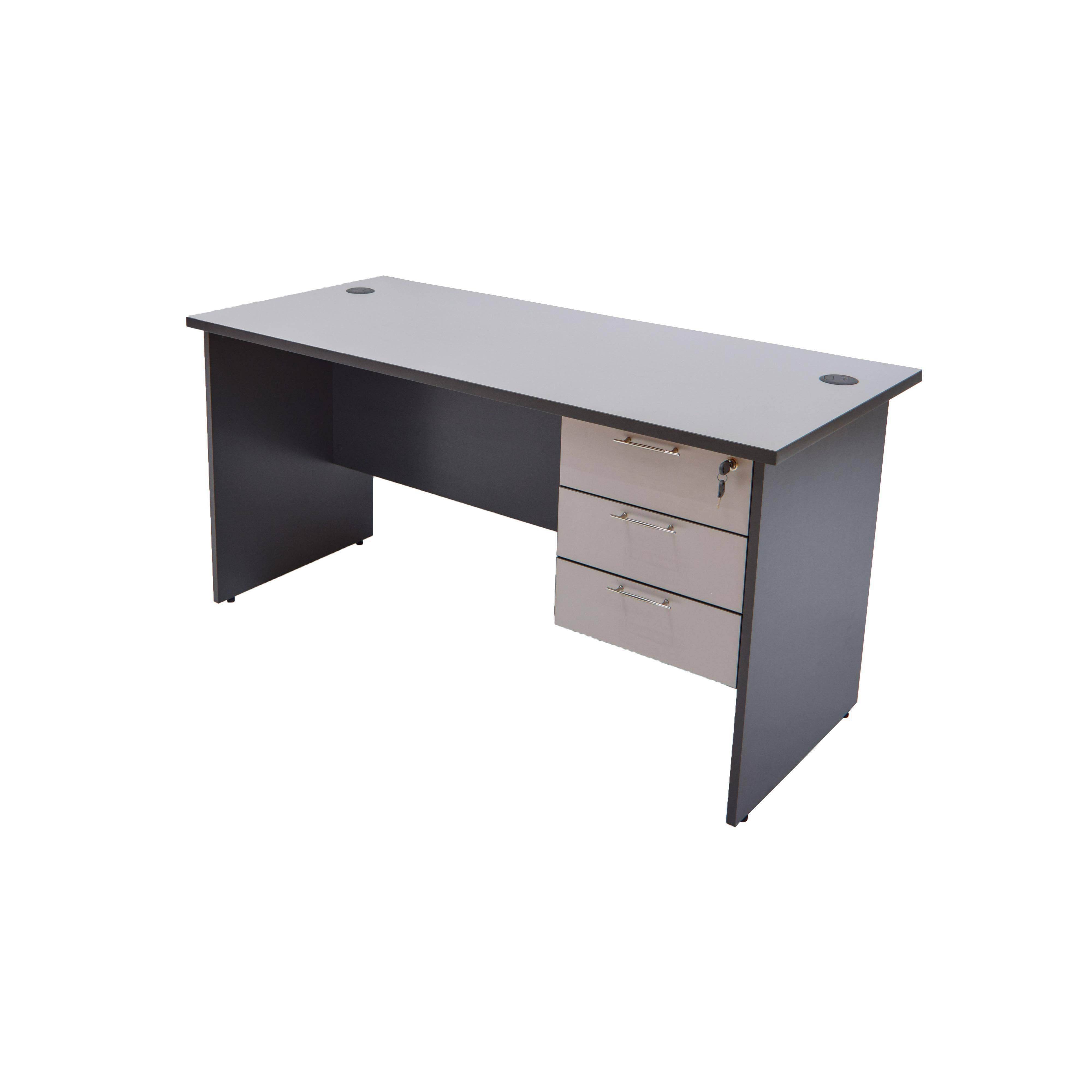 The Deonne Study Table (150cm) is a sophisticated addition to your study or home office. Crafted with a durable wooden top, this table offers a spacious surface for your work or study needs. Three drawers, including one with a convenient lock feature, provide ample storage for your essentials, keeping your workspace organised and clutter-free. As depicted in the picture, the elegant design and colour scheme effortlessly blend with any decor.