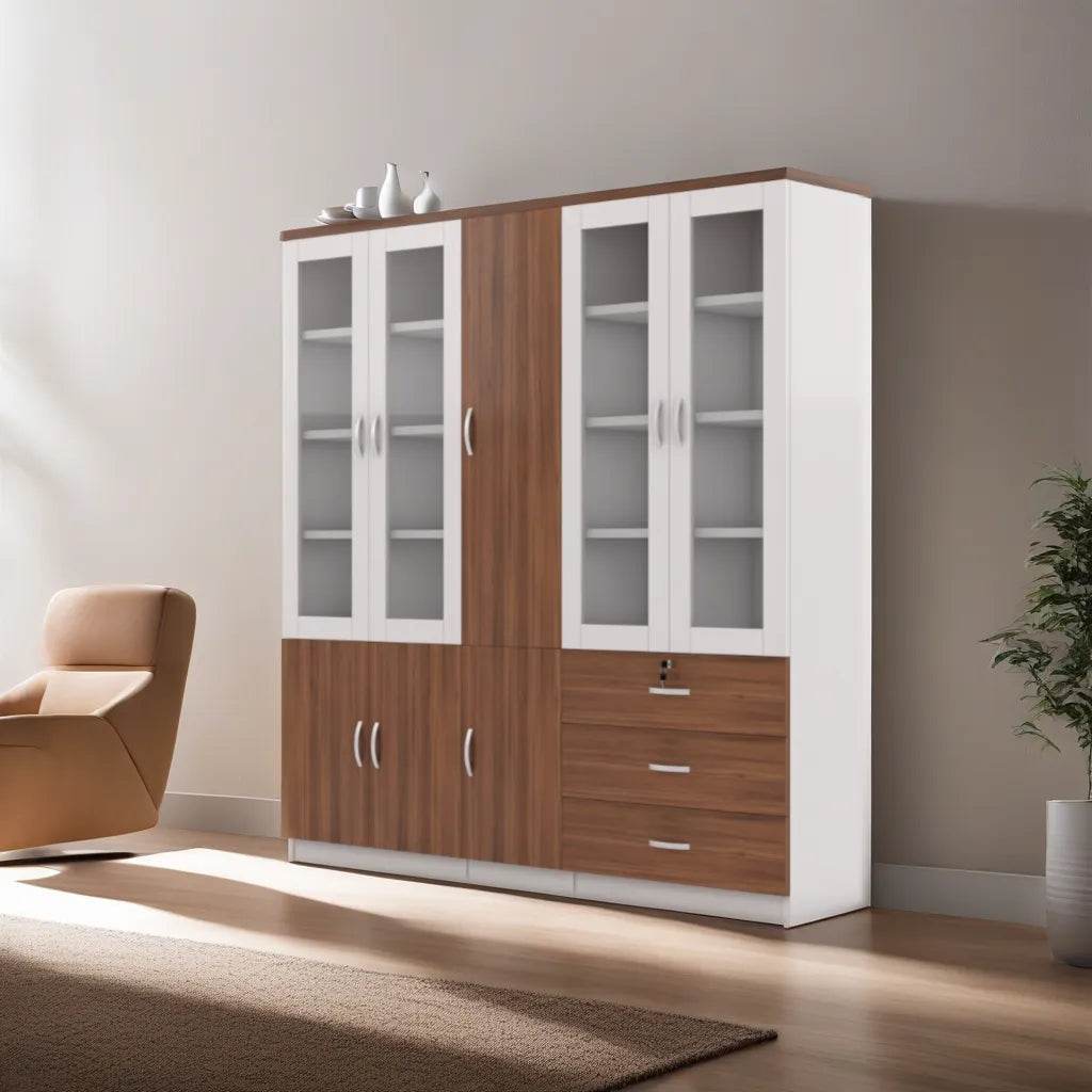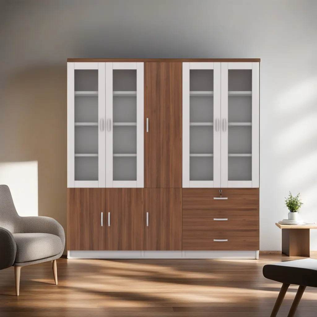 Crafted from sturdy MDF with a chic laminated finish, the Destrie Display Unit / Bookshelf is ready to tackle any clutter challenge. With eight doors and three drawers (one even locks - perfect for those private items), this unit is a dream for anyone craving organisation. It's got shelves, too, ideal for displaying your favourite books, plants, or maybe some charming Peranakan ceramics.