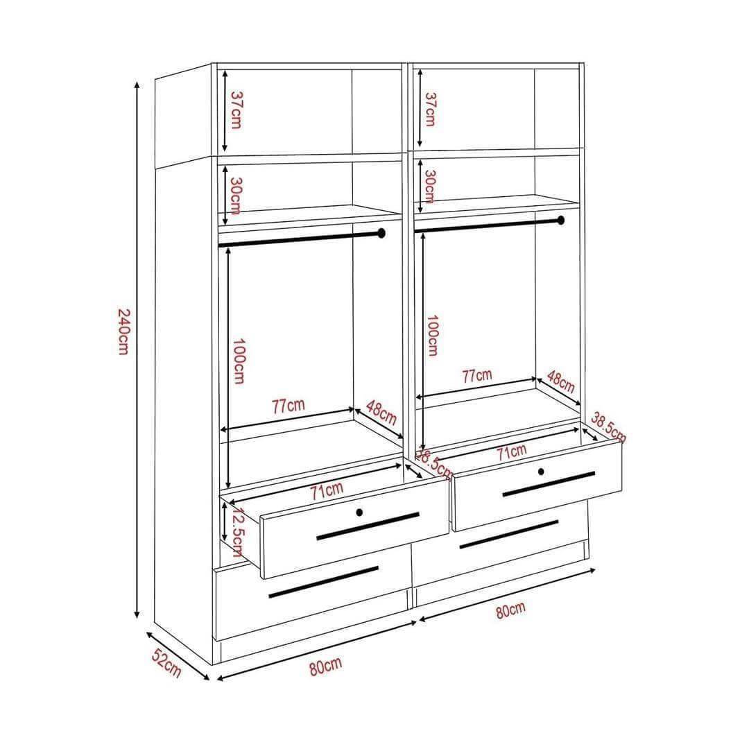 Deverac II 4 Open Door Wardrobe with Drawers & Top