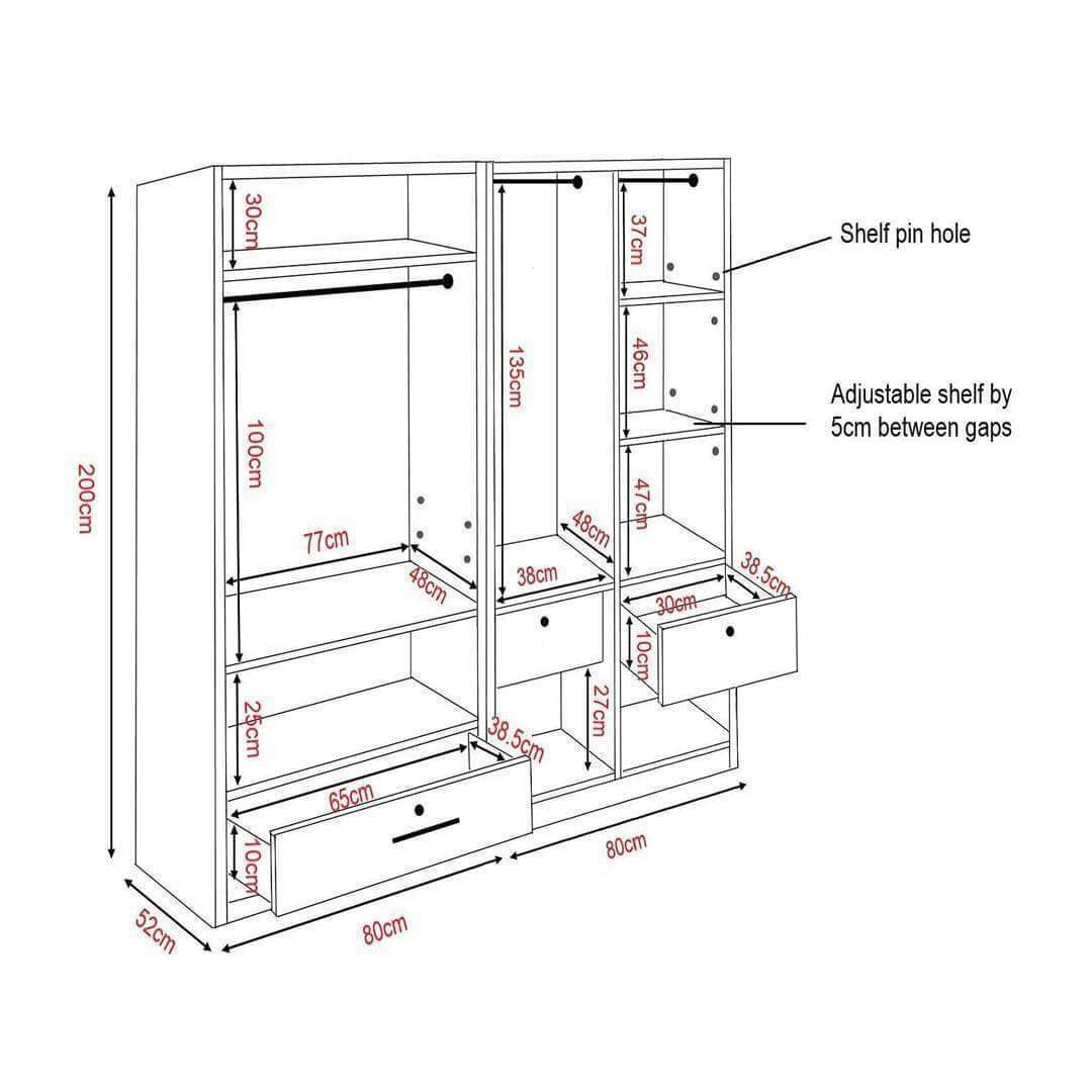 Designed to meet the diverse storage needs of modern living, the Deverel Mirror 4 Open Door Wardrobe offers ample space to organise and display your wardrobe essentials. With spacious open doors, accessing your belongings is effortless, making your daily routine more convenient. Plus, including mirror on one of its doors creating a sense of spaciousness and brightness, making even small rooms feel more expansive.