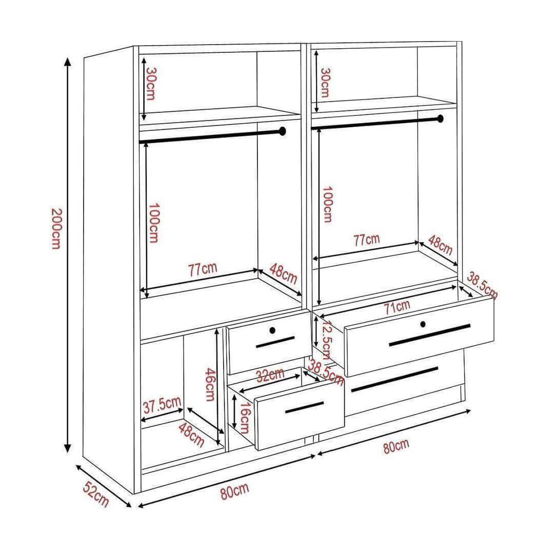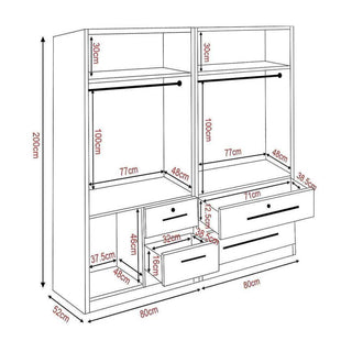 With four open doors, accessing the Deverell III 4 Open Door Wardrobe with Drawers is effortless, while the inclusion of drawers provides designated spaces for your various items. Whether it's keeping your clothes neatly folded, organising your shoes, or storing bedding accessories, this wardrobe ensures everything has its place.