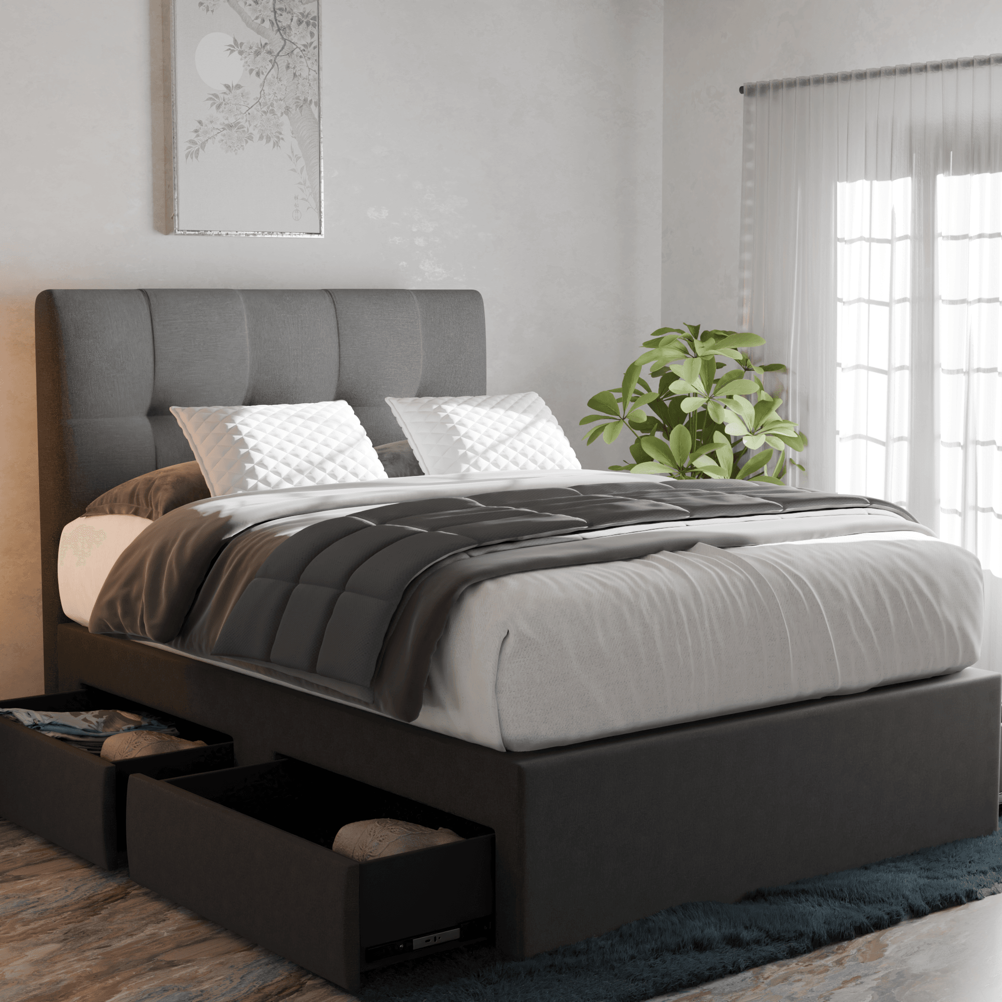 Are you looking to elevate both the style and functionality of your bedroom space? Devon Fabric Drawer Bed Frame is the one you’re looking for! This drawer bed offers the perfect combination of comfort and organisation with its high-quality fabric upholstery that not only adds elegance but also ensures durability for long-lasting use. Also, beneath the mattress lies an integrated storage solution, discreetly tucked away, providing you with ample space for stowing away extra bedding, pillows, or any other essentials.