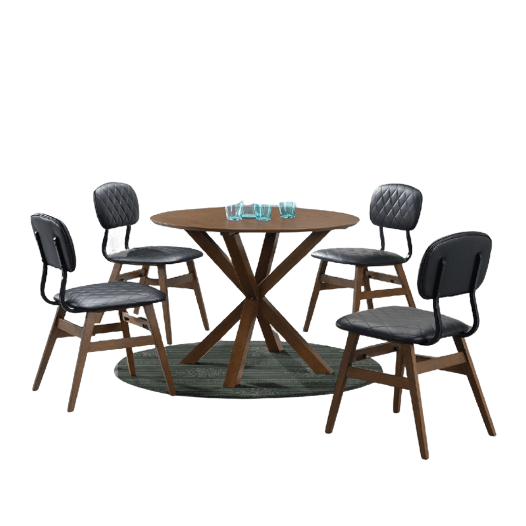 - Chairs: Faux leather cushioned seat and backrest for comfortable seating