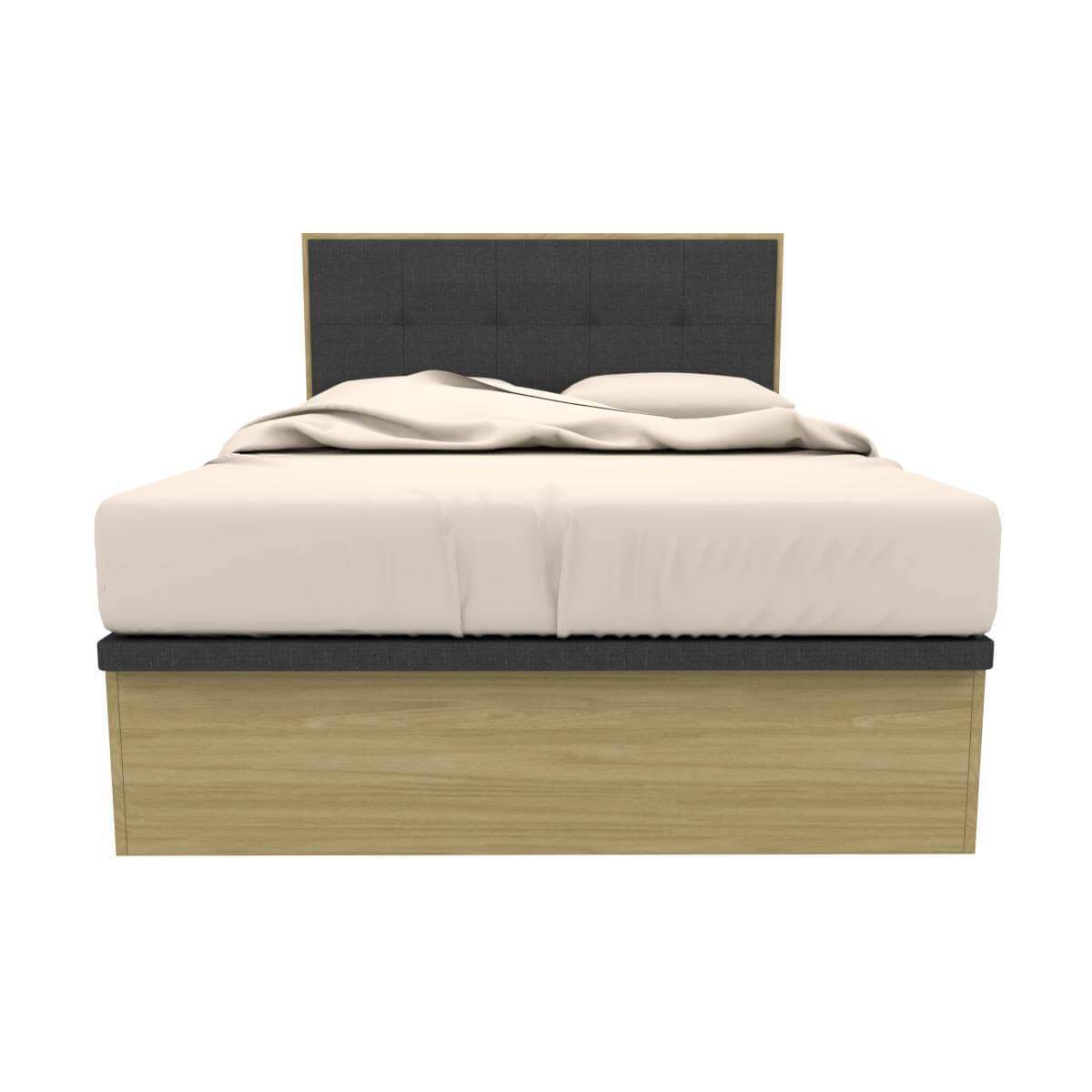 Eamon Queen Size Wooden Storage Bed introduces a mid-century modern charm to your bedroom with its exposed wood design and cushioned body and headboard. It works with a high-quality gas lift hydraulic system for easy access. The set comes with Solano Hybrid Foam Mattress for a more refreshing sleep. The knitted fabric enveloping the mattress' high density foam filling helps provide a breathable feeling during sleep.
