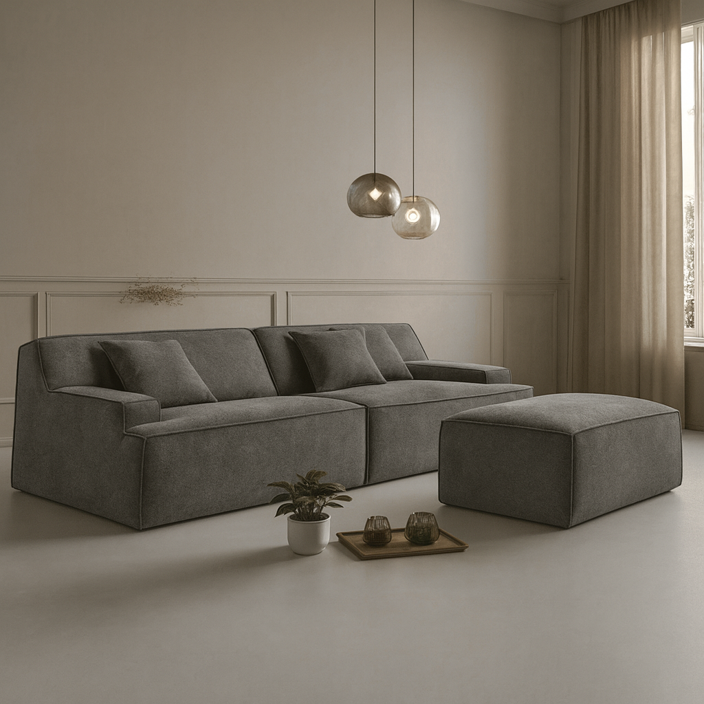 Elara Velvet Fabric Sofa + Stool (Pet Friendly)