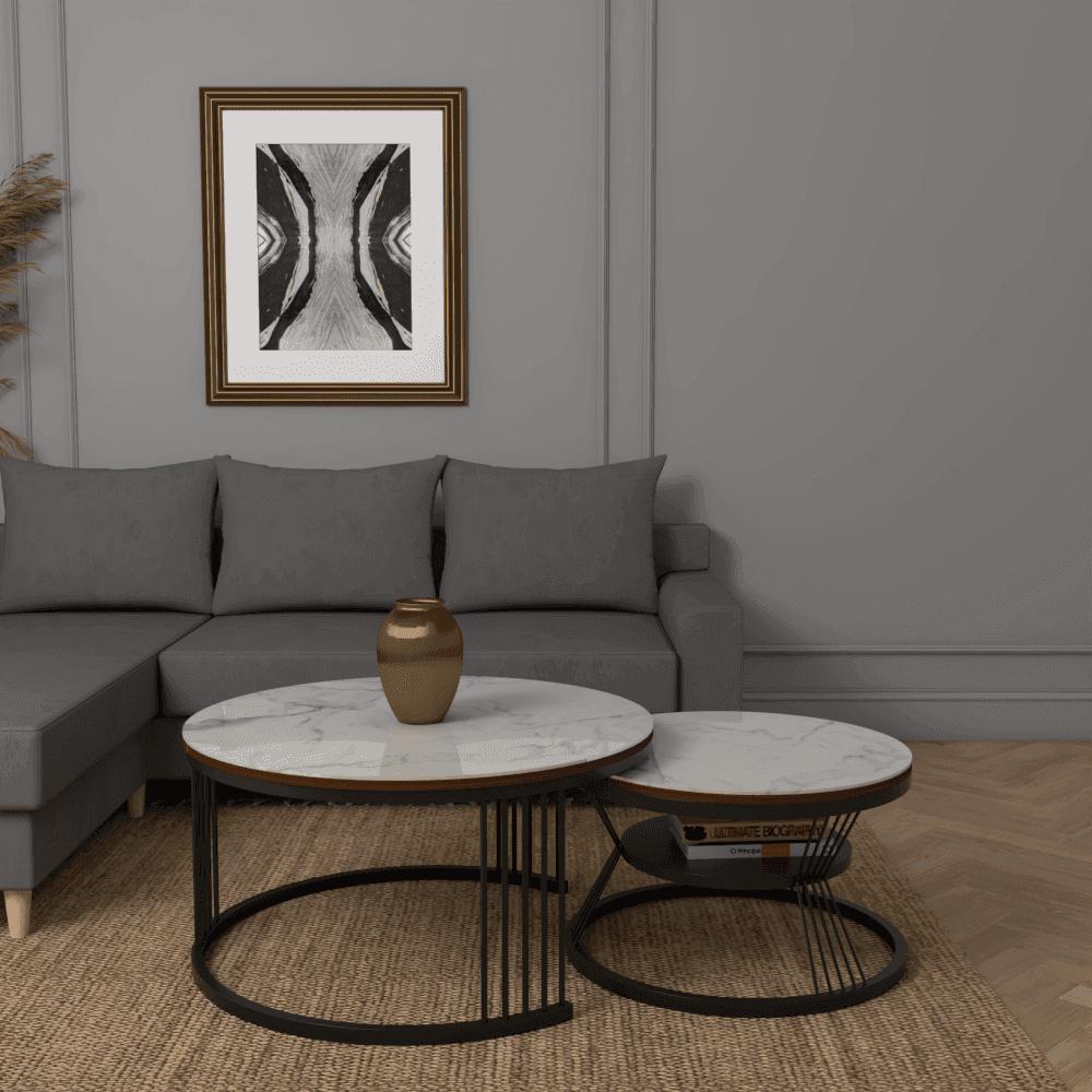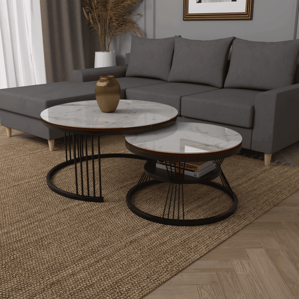 Elias Glossy Sintered Stone Round Nesting Coffee Table