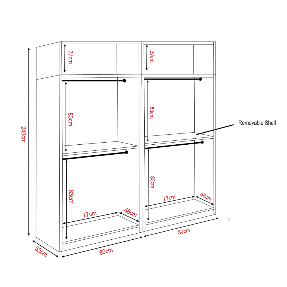 Elizabeth 4 Door Marble Wardrobe with Top (160cm)