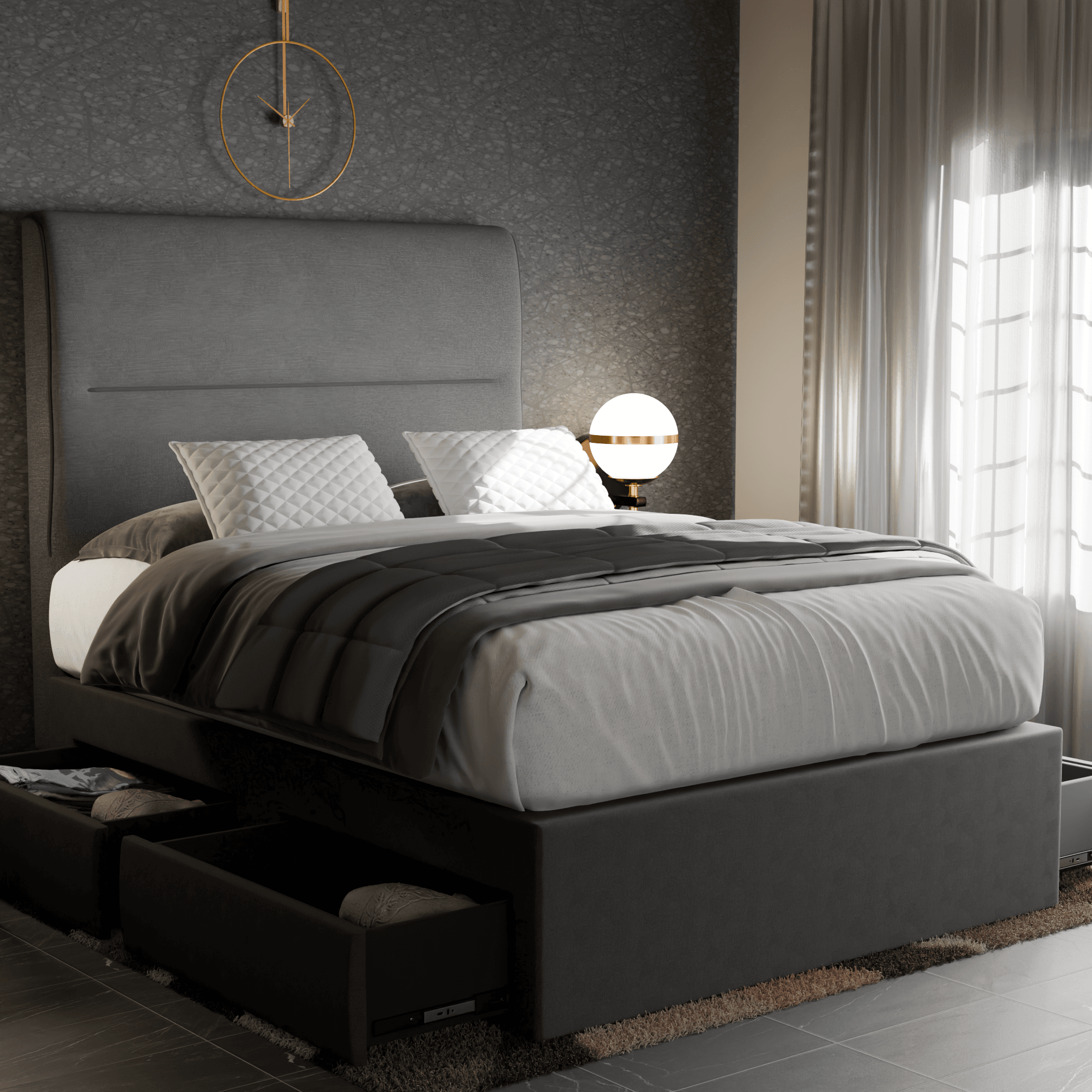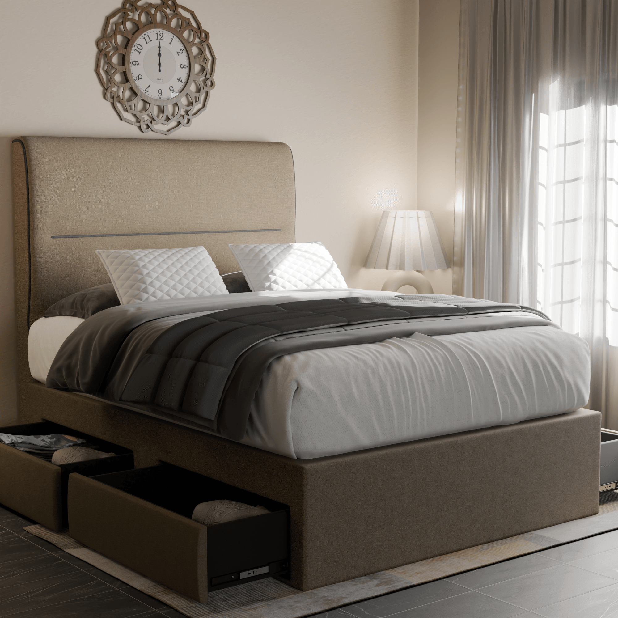 Indulge in luxury with the Emilia Fabric Drawer Bed. Crafted with exquisite fabric, this bed offers both comfort and style. The built-in drawers provide convenient storage, while the elegant design adds a touch of sophistication to any bedroom. Upgrade your sleeping experience with the Emilia Fabric Drawer Bed.