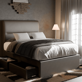 Indulge in luxurious comfort with the Emilia Faux Leather Drawer Bed. The elegant design features faux leather and convenient drawers for extra storage. Transform your bedroom into a modern and sophisticated sanctuary.