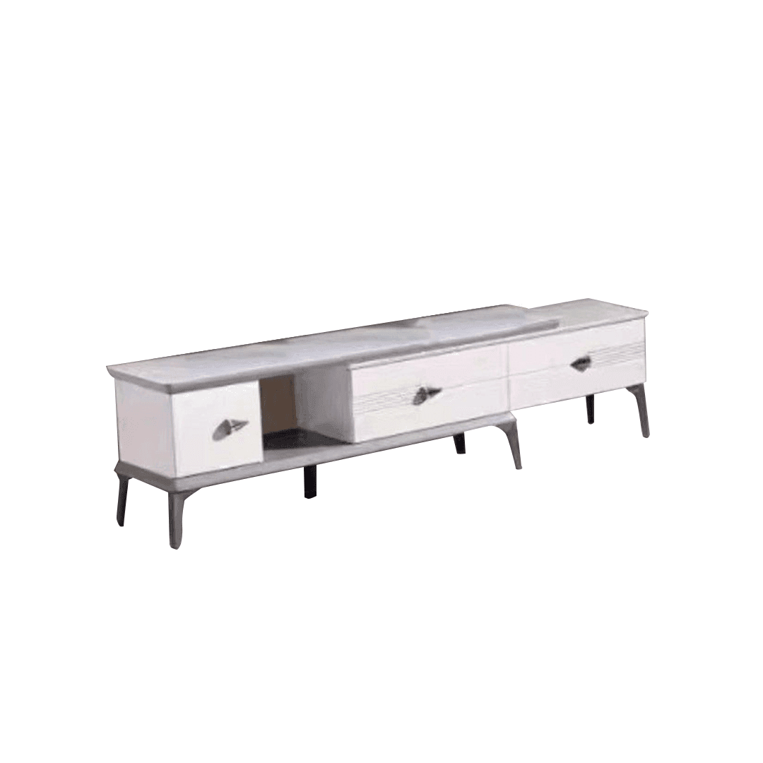 Etta II Extendable TV Console with Glossy White Jade Stone Top