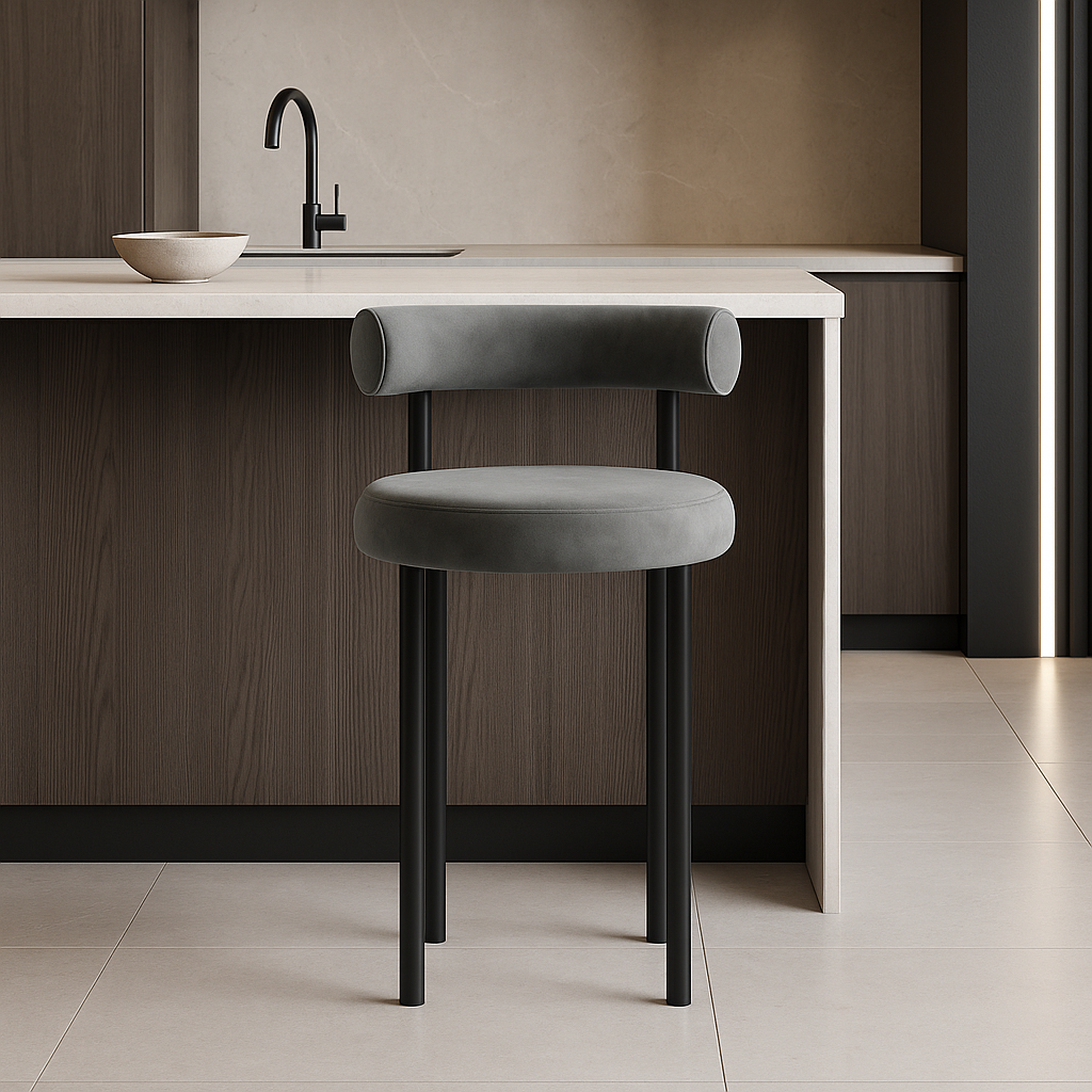 Elevate your kitchen island or home bar with the sophisticated Felicity Fabric Bar Chair. This piece effortlessly combines luxurious comfort with a sleek, modern aesthetic, making it an ideal addition to contemporary living spaces.