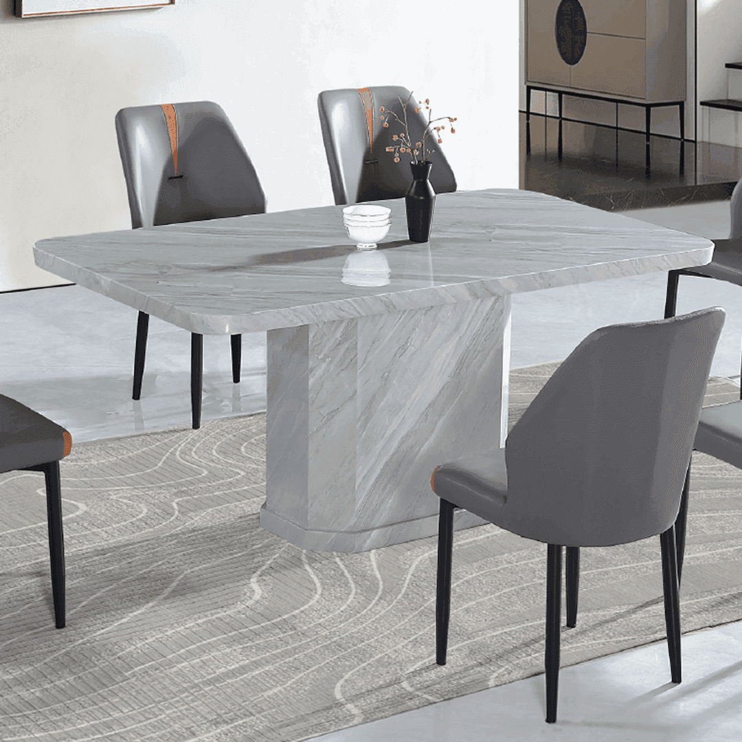 Indulge in luxury dining with our Gordome Marble Dining Table. Made with exquisite Italian grey marble, this dining table will elevate your dining experience and add a touch of elegance to your space. Experience the richness and beauty of marble.