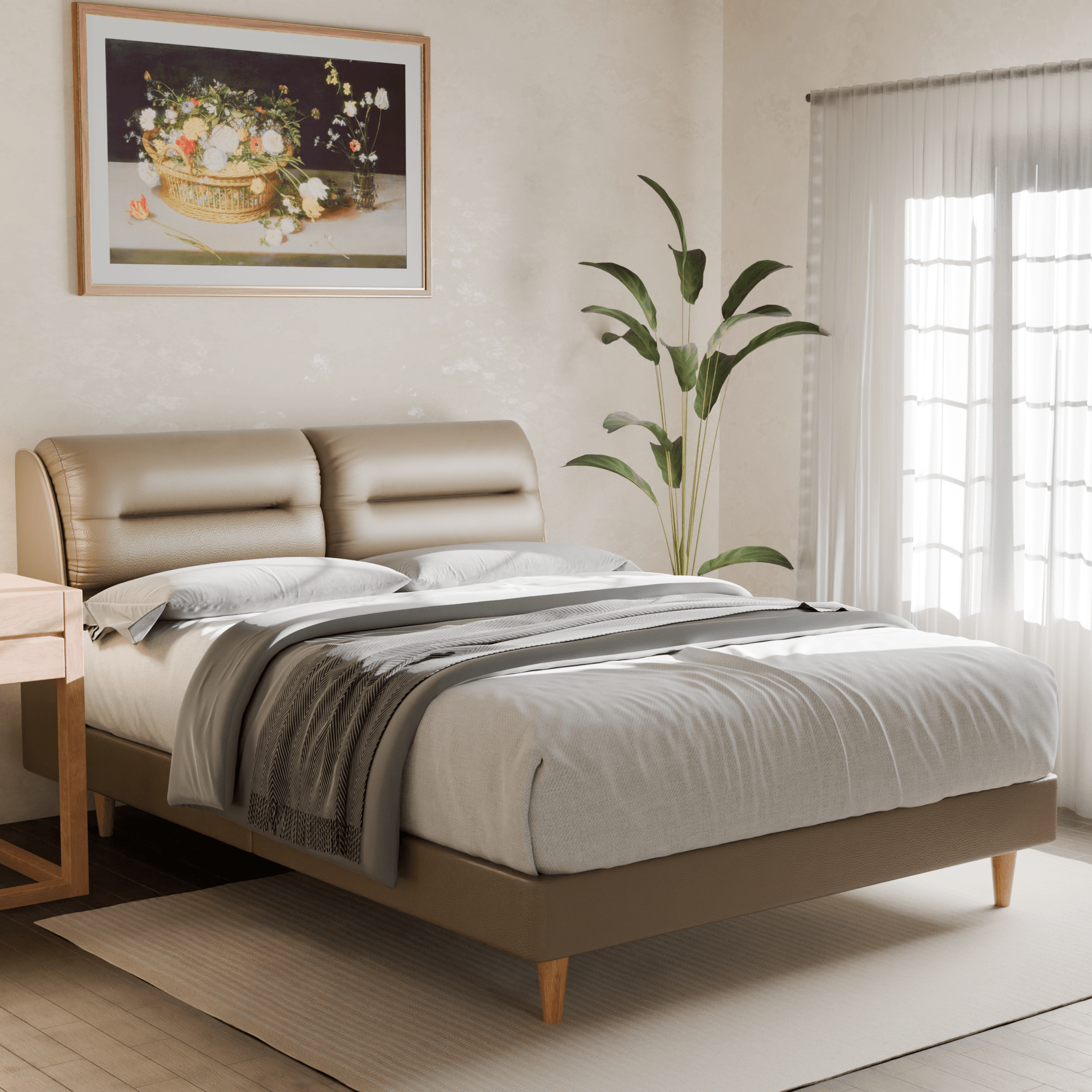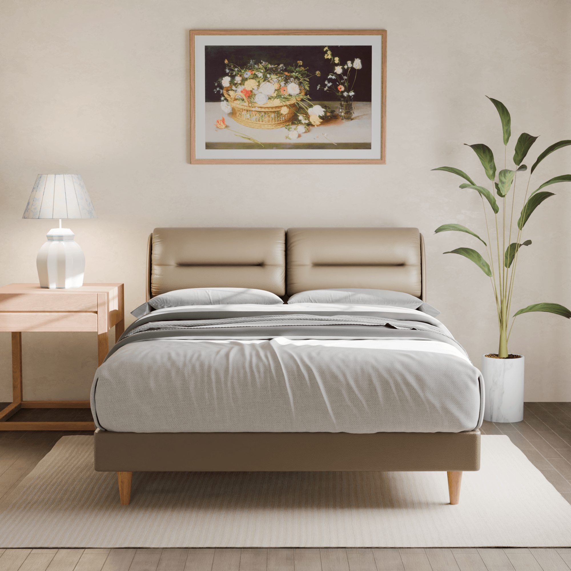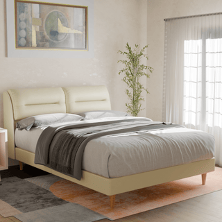 Introducing the Hanubee Faux Leather Bed Frame, an elegant and sophisticated addition to any bedroom. Made with premium faux leather, this bed frame exudes luxury and exclusivity. Perfect for the discerning customer looking for a combination of style and comfort. Elevate your bedroom to the next level with our Hanubee bed frame.