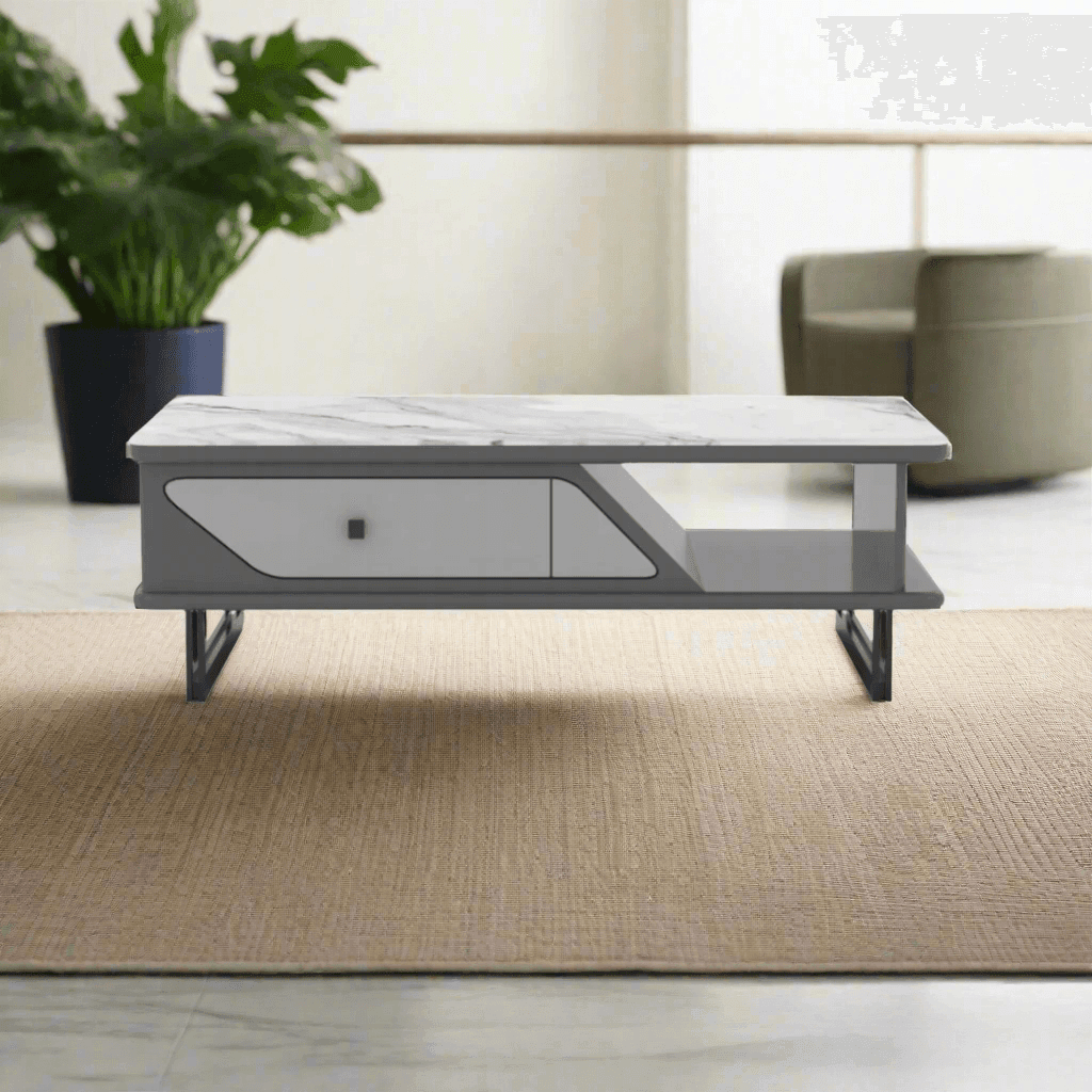 Upgrade your living space with our stunning Harper Marble Tech Coffee Table. The luxurious carbon steel legs not only offer a sleek and modern touch, but are also durable and long-lasting. Focusing on eco-friendly materials, this table is made with laminated veneer, making it a perfect choice for those who care about the environment. Transform your home into an elegant oasis while being environmentally conscious with the Harper Marble Tech Coffee Table.