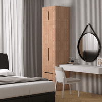 The Harris 2 Door Open Wardrobe with Top is crafted from durable plywood and features sleek black iron handles. Its dual soft-closing hinged doors open to reveal 2 drawers with drawer base support and reinforcement, plus a clothes rod for extra storage. Plus, there's even more storage at the top!