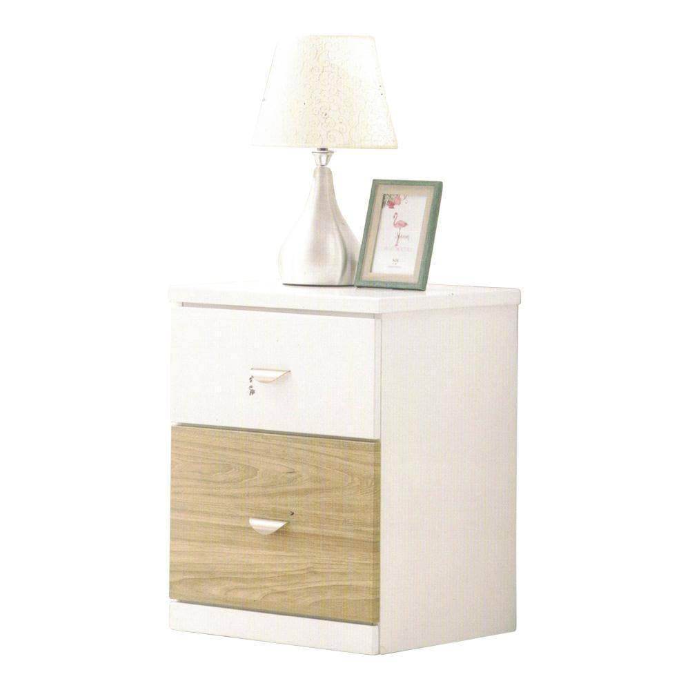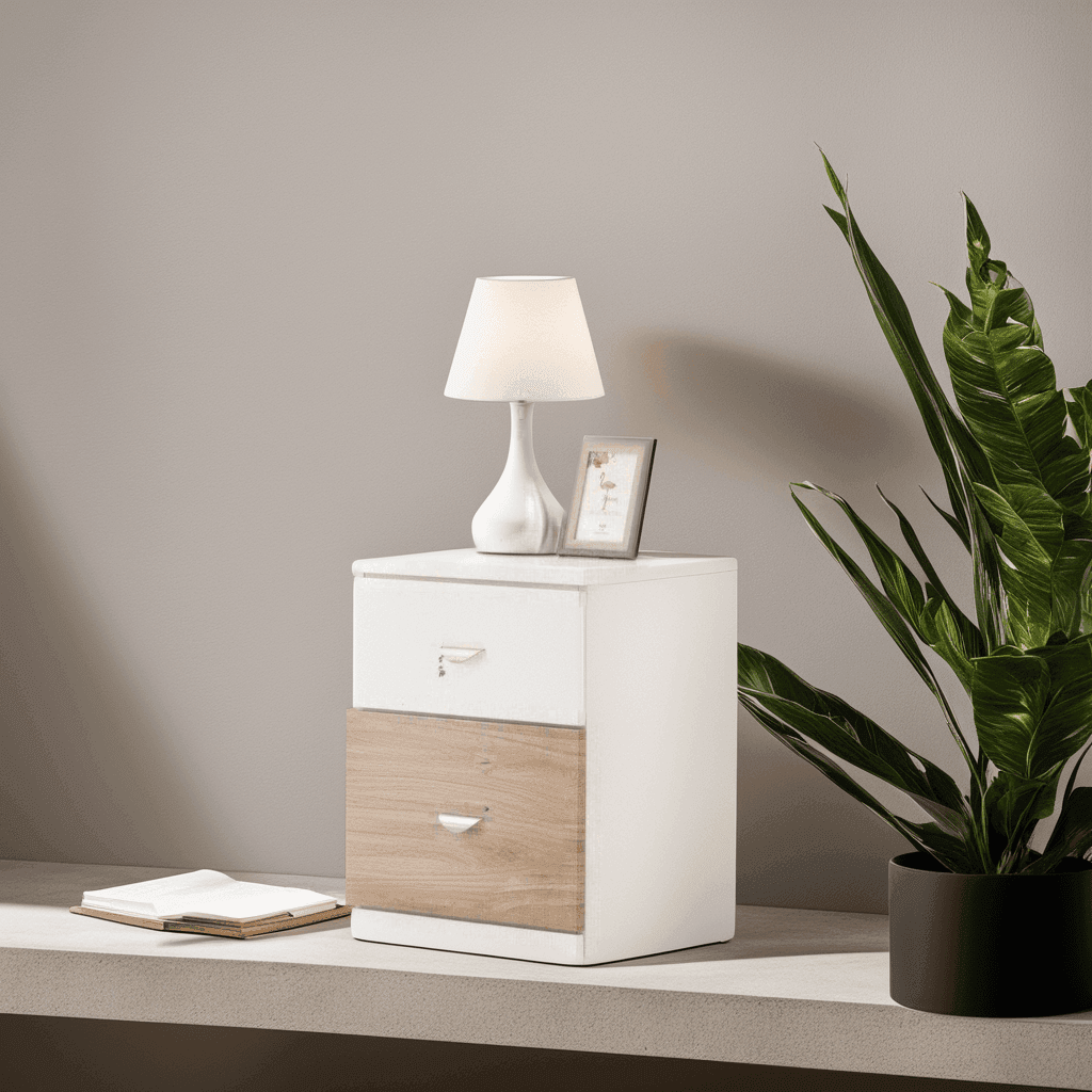 Transform your bedroom into a contemporary oasis of sophistication with the Hilda Bedside Table, featuring a stunning combination of white and light wood colour finishes. This bedside table also features a durable wooden frame adorned with a lustrous finish, offering both sturdiness and visual appeal, and its spacious top surface provides ample space for a lamp, books, or your nighttime essentials.