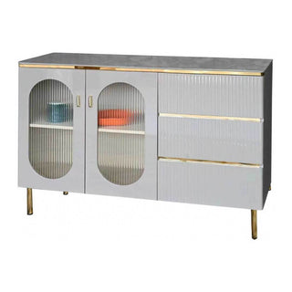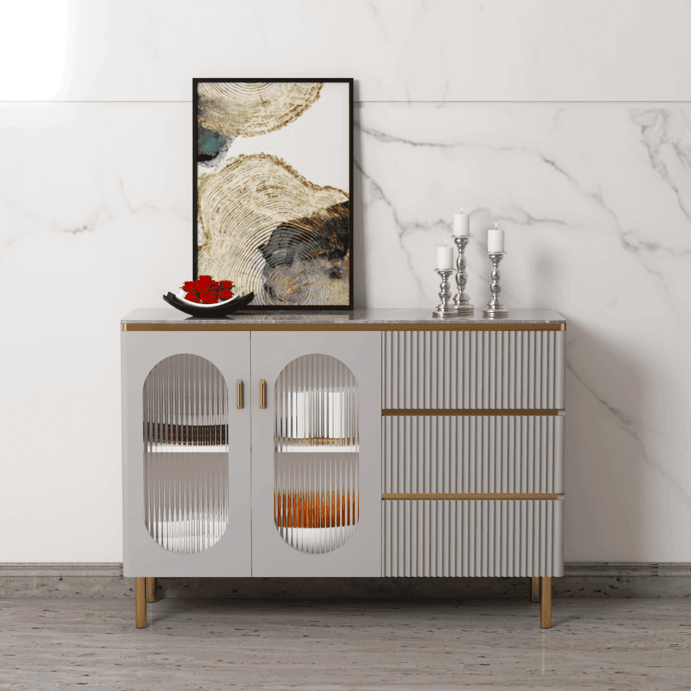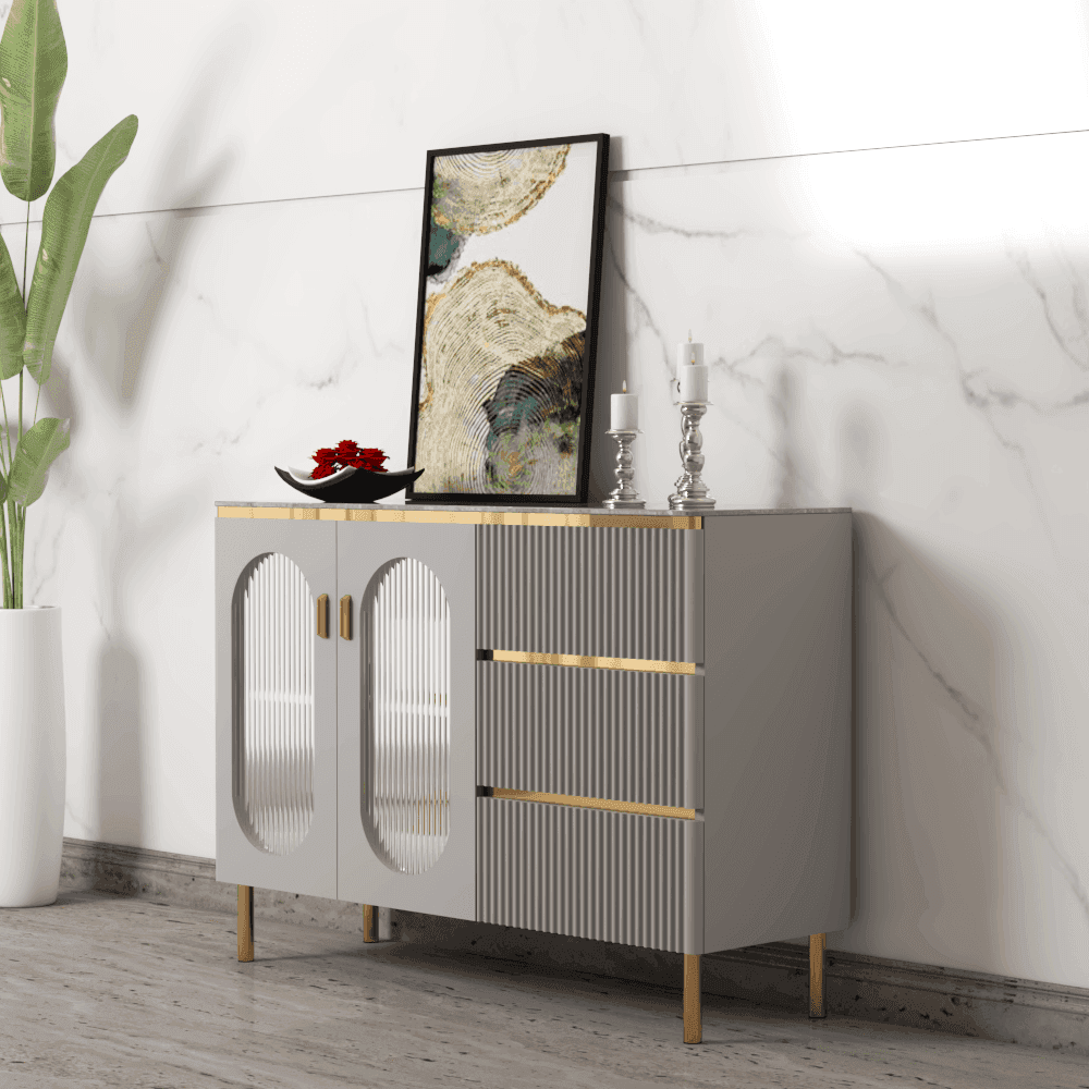 The Hollis Polished Sintered Stone Buffet Hutch is not just gorgeous storage furniture. Made with polished sintered stone for its top, this hutch is durable and offers hassle-free maintenance. The light grey gloss finish gives it this modern, stylish touch that can fit into any room aesthetic.