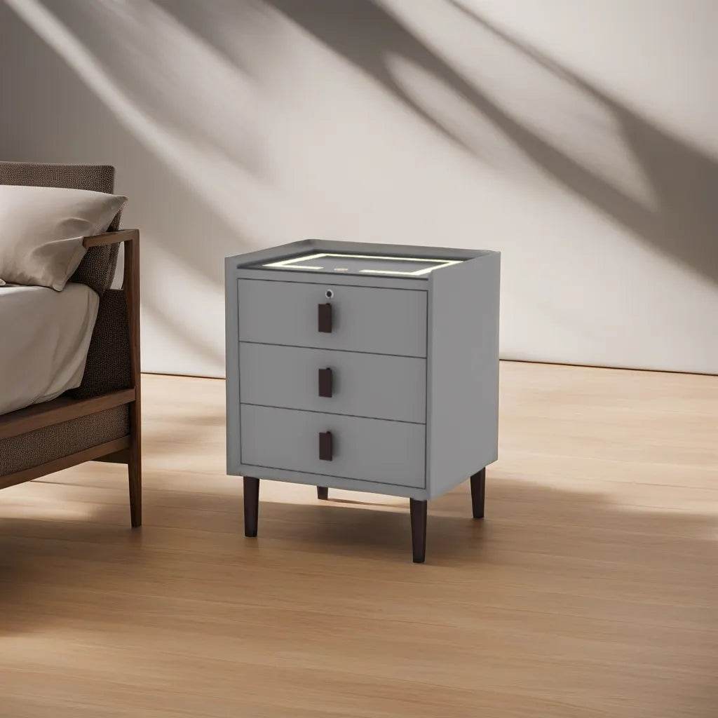 Simplify your bedtime routine and elevate your bedroom ambience with the multifunctional Jennison Bedside Table with LED Light and Speaker.