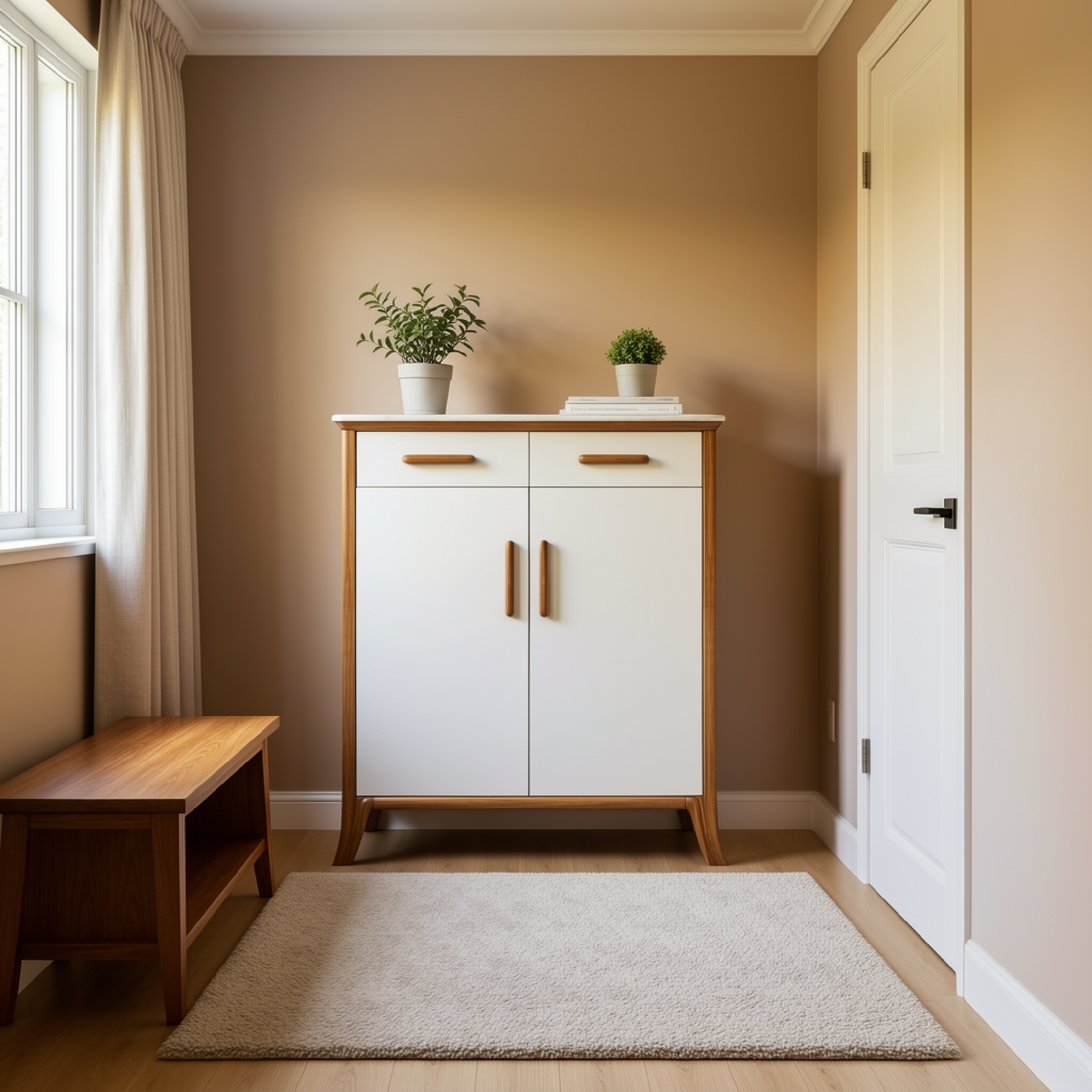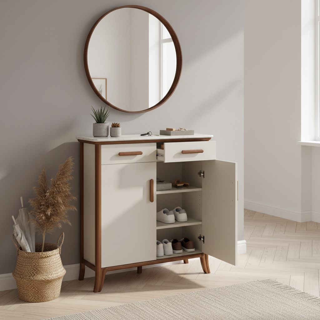 Transform the top of the Jersey shoe cabinet into an engaging space by placing a colourful, interactive element like a small chalkboard or magnetic board.