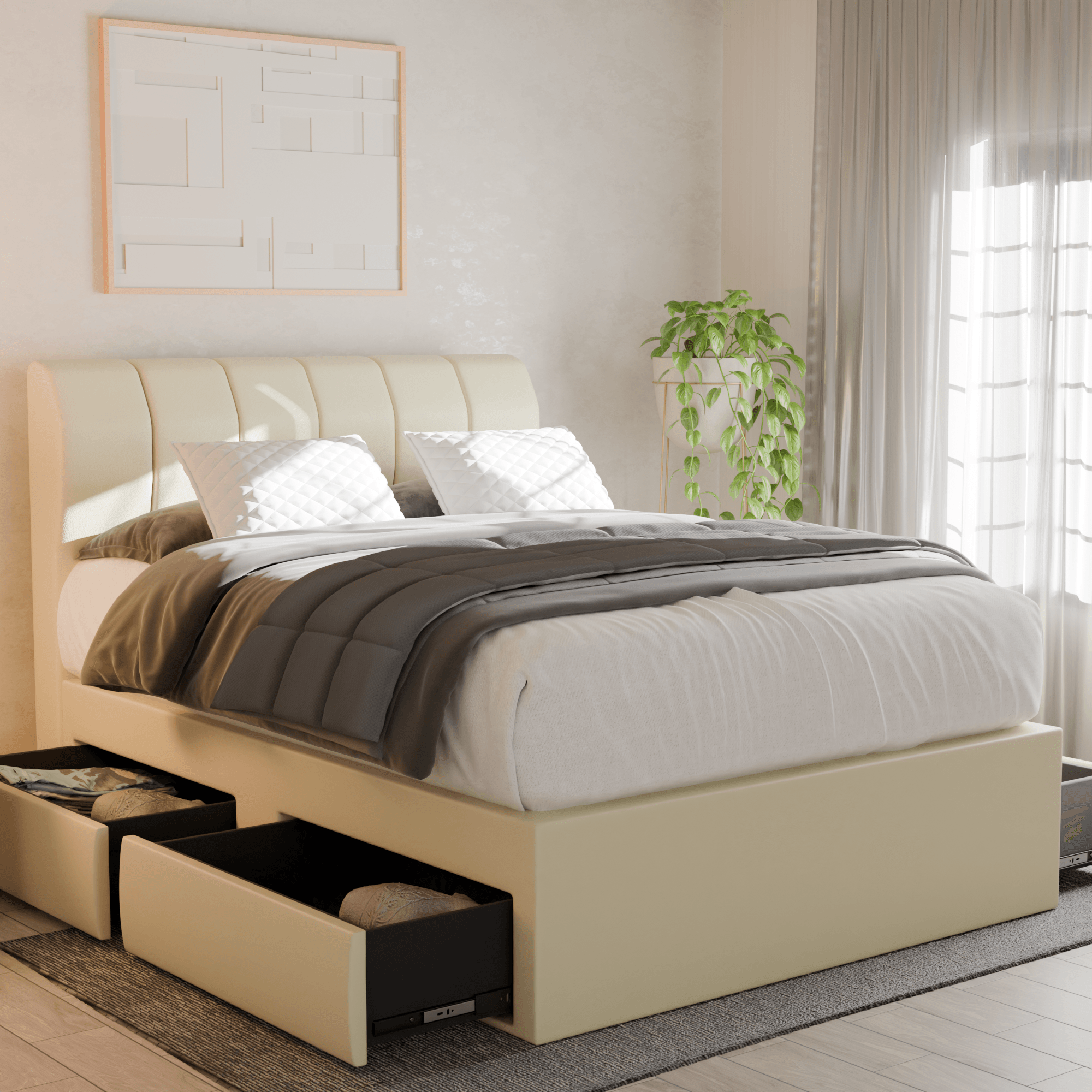 Kazura Faux Leather Drawer Bed Frame