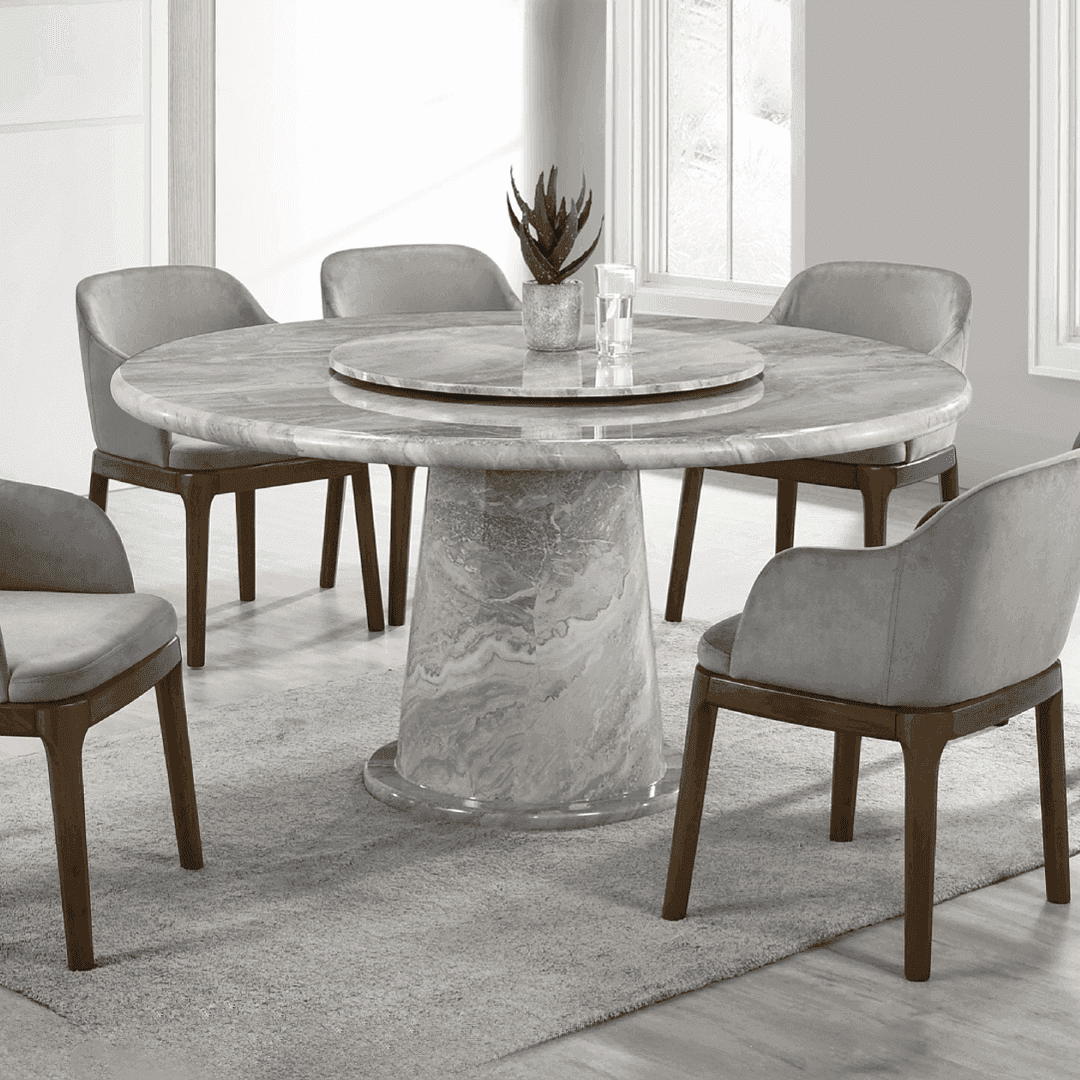 Elevate your dining experience (literally!) with the Kerra Round Marble Dining Table. This sleek and stylish table features a luxurious marble top and convenient lazy susan for easy serving. Prepare to impress your guests (and yourself) with this unique and functional piece of furniture.