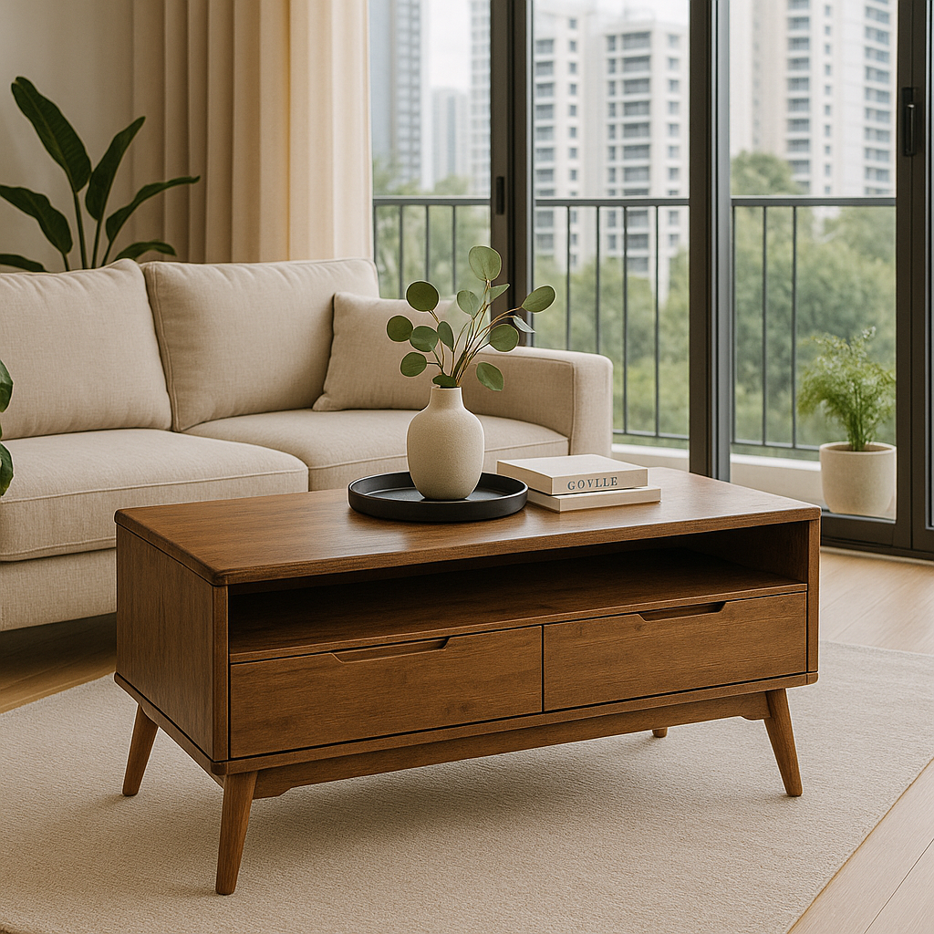 Indulge in both form and function with the Khim Solid Wood Coffee Table - a perfect addition to any minimalist or traditional home. Its timeless design and rich brown finish seamlessly complement any interior. Crafted from sturdy solid wood, this coffee table guarantees durability and long-lasting use. Enhance your space with this practical and stylish investment.