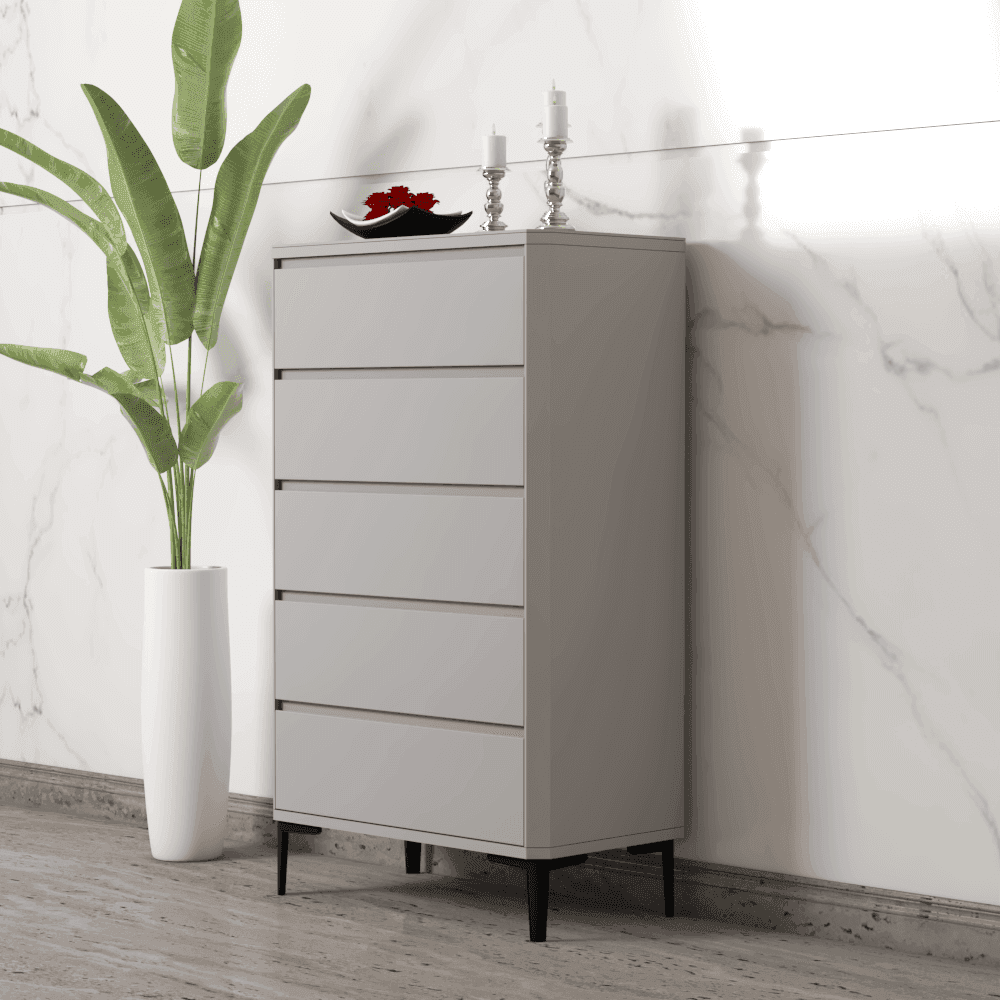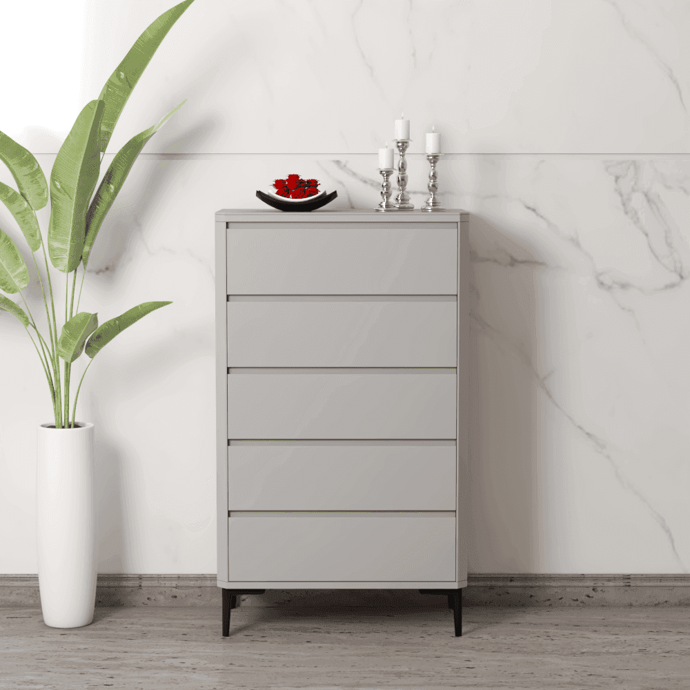 Designed with clean lines and a sleek silhouette, the Lavo Polished Sintered Stone Chest of Drawer exudes contemporary elegance, making it a timeless addition to modern interiors. Its polished sintered stone surface gives refinement and ensures durability and easy maintenance, promising enduring beauty for years to come. It features a handless design, and each drawer glides open effortlessly, revealing ample storage space to organise your belongings neatly.