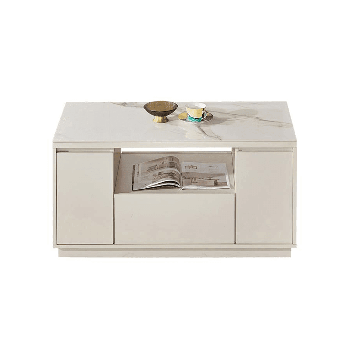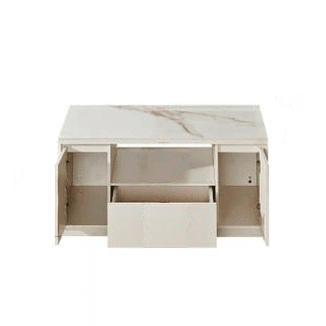 With its glossy snow-white sintered stone top, the Lazarus Glossy Sintered Stone Coffee Table is a cinch to clean and tough enough to handle whatever life throws at it – from kids' crafts to your morning kopi sessions. The MDF wood body with its chic off-white finish fits any Singaporean home, adding a dash of modern elegance. And the storage? It's a dream! Two doors and a drawer mean all your clutter – remotes, magazines, you name it – can be tucked away in a jiffy.