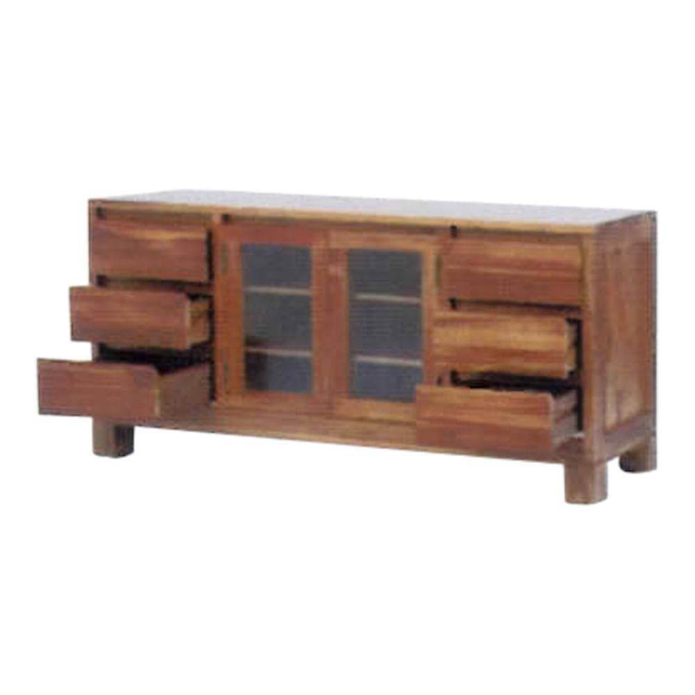 This teak wood buffet hutch has a solid construction and smooth finish, perfect for your lounge area.