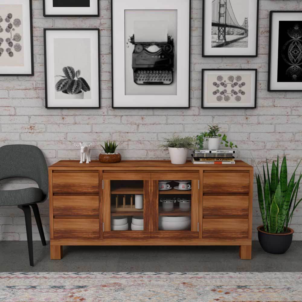 Have you come across the Levette Teak Wood Buffet Hutch? It€™s a stylish piece! Made from teak wood, it is not just good-looking but also durable. The size of this wood buffet hutch is convenient, so it fits well even in limited spaces. It has two doors and six drawers, which is amazing for organising all your random bits and pieces. Plus, size drawers mean a lot of room for your ever-growing tableware collection.