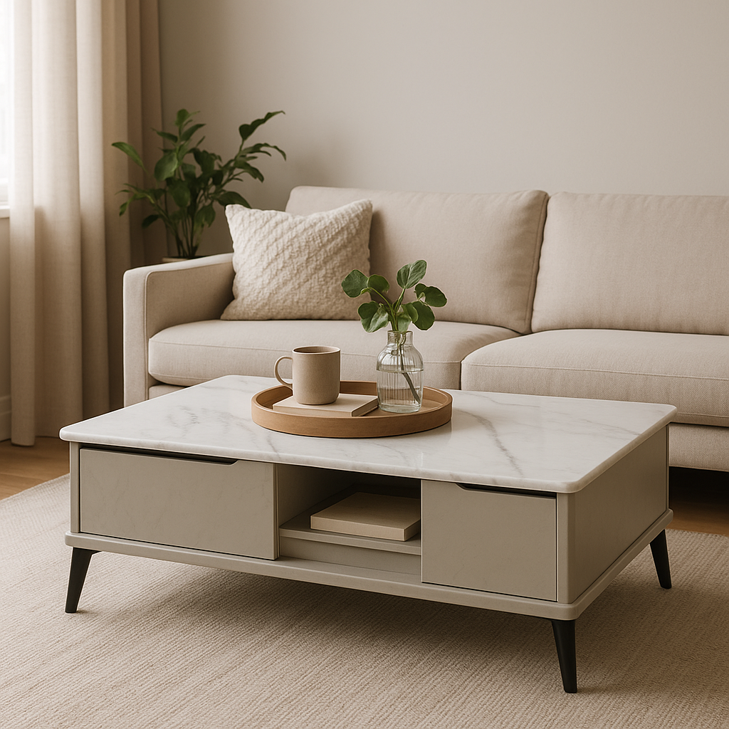 The Lucie Marble Coffee Table, with its marble top, isn’t just about luxe vibes; it’s super easy to wipe clean after your kopi or teh sessions. The MDF wood structure? It’s solid and reliable, just like a good friend. And with two drawers, you can wave goodbye to all that tabletop clutter – remotes, magazines, you name it, they're out of sight.