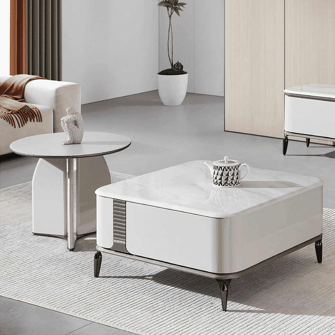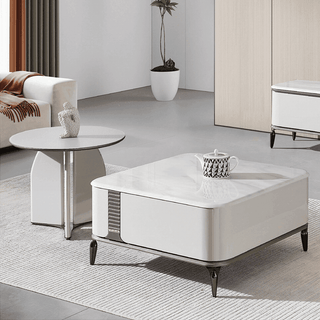 Lucille Nesting Coffee Table with Cultured Marble and Tempered Glass Top
