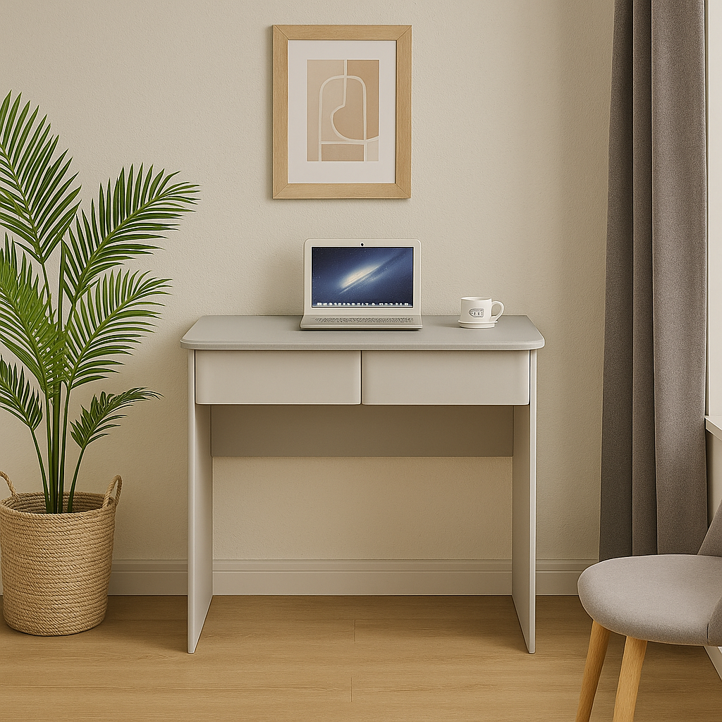 Introducing the Marielle Study Desk (80cm)! With a sparkling Phenolic Film Matt Glitter Grey top and sleek Matt Light Grey Round Edges, this desk is perfect for adding some fun to your workspace. Made with durable MDF, it's sturdy and stylish all at once.