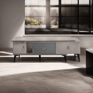 Forget about struggling with cluttered cables and messy storage. The Melissa console features two soft-closing drawers and one open-door cabinet, providing ample space to organise your media devices and accessories. Crafted from MDF with a sleek grey finish, the Melissa console adds a touch of modern sophistication to any living space.