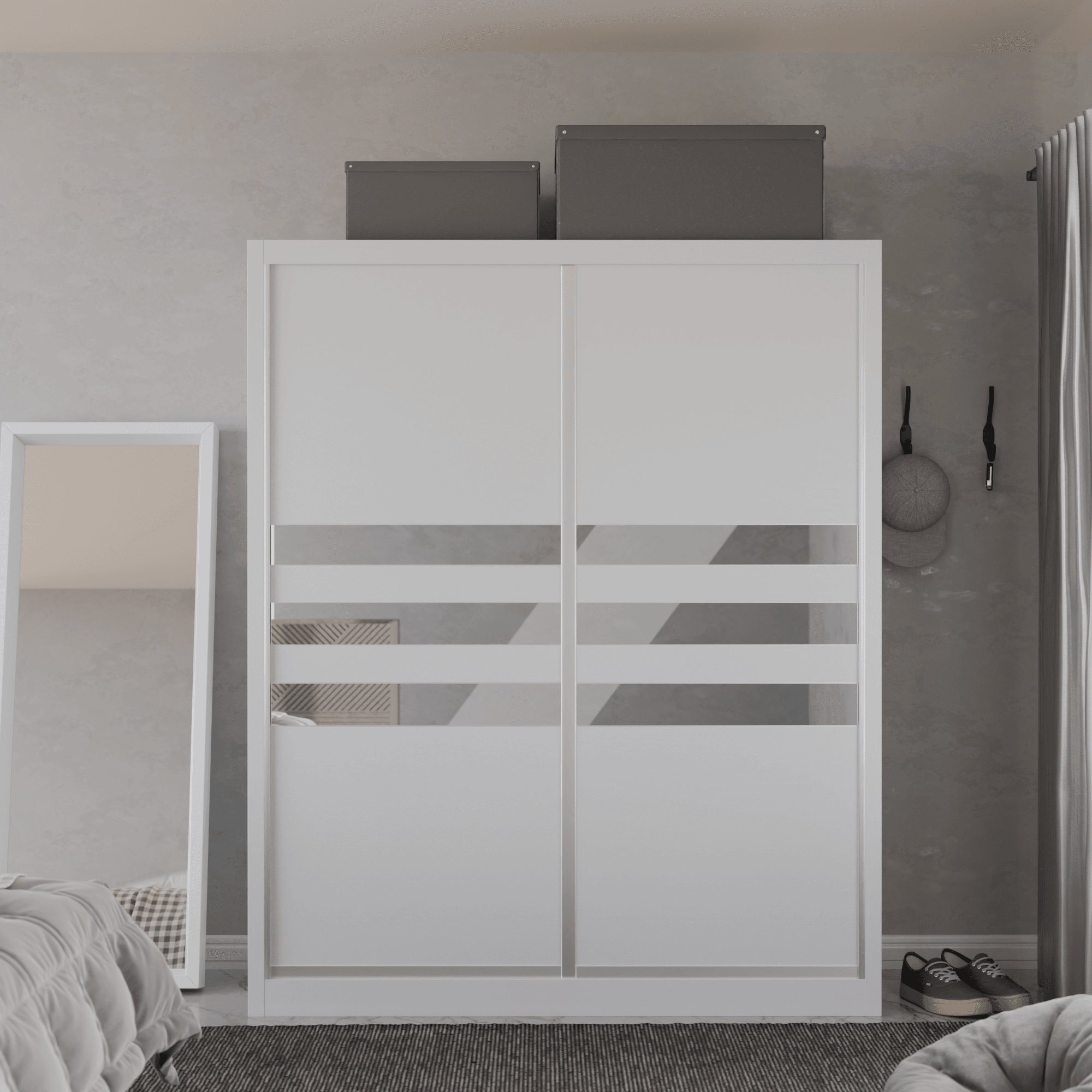 8 feet wardrobe will come in 3 compartments with an additional option to choose the center interior sections