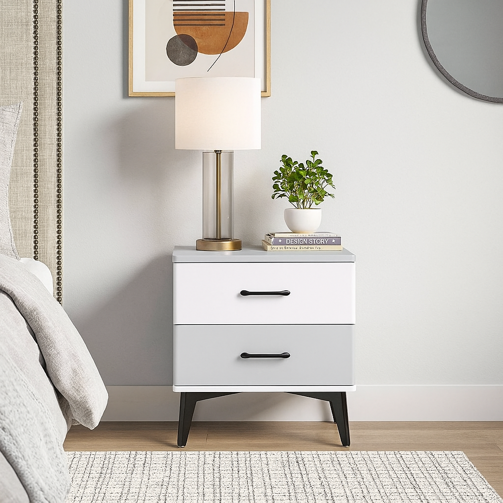 - Two Toned Bedside Table: Grey and White