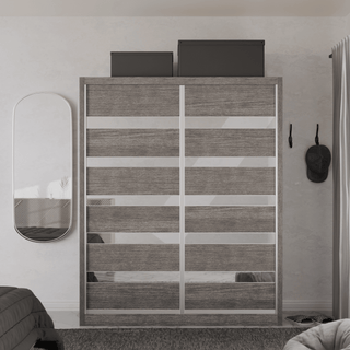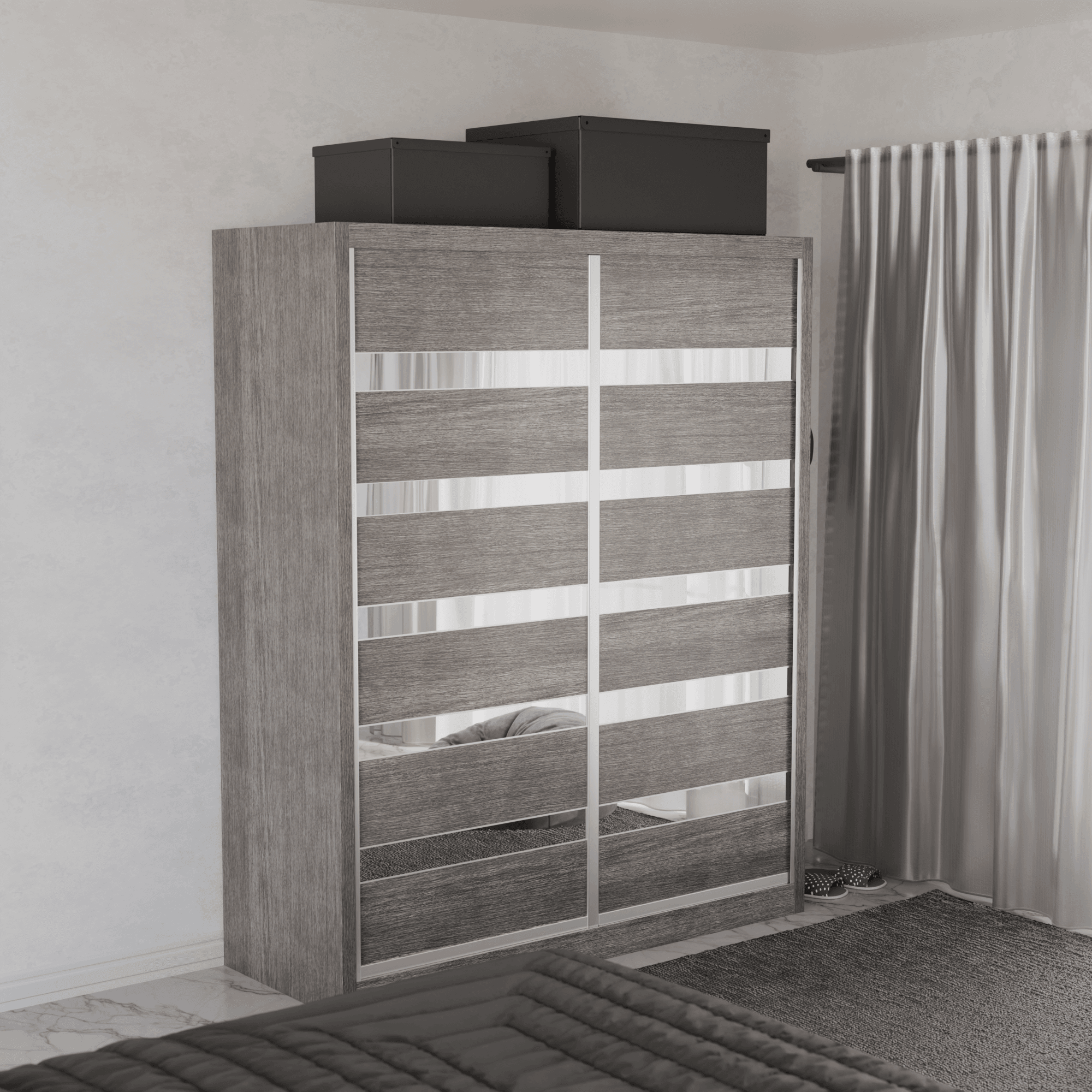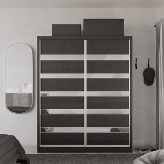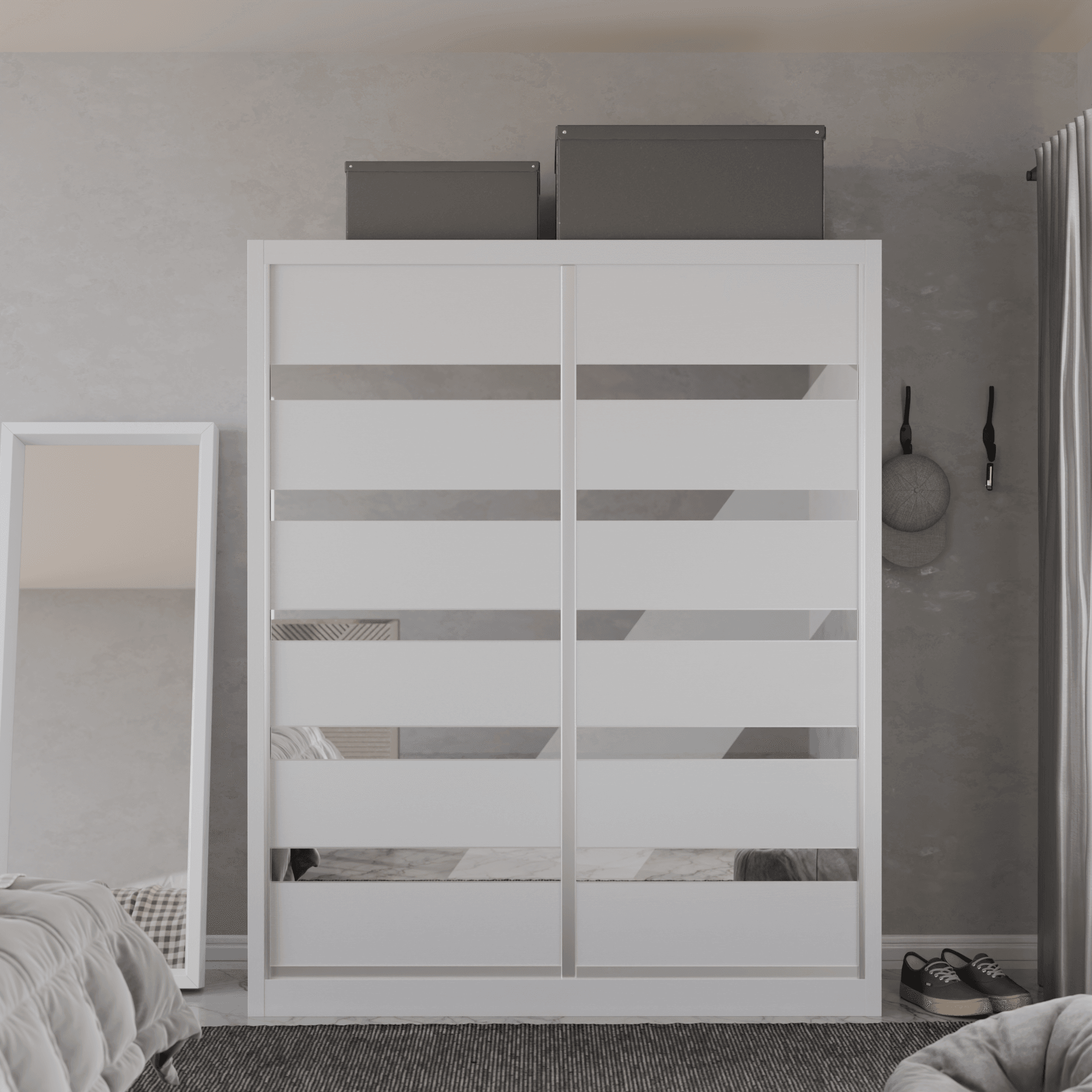 The Modolva Modular Wardrobe frame is constructed with particle board frame, with a plywood backing and laminate finish.
