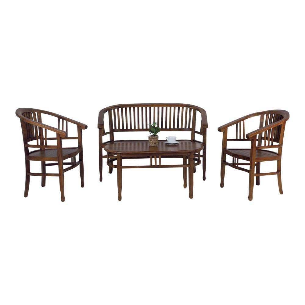 Crafted entirely from teak wood, known for its strength and longevity, the Mondola Teak Tea Set is a lasting investment for your outdoor space. It includes a two-seater bench and two armchairs, offering ample and comfortable seating for your gatherings. The oval coffee table, crafted from teak, completes the set elegantly and is perfect for holding your tea, coffee, and snacks.
