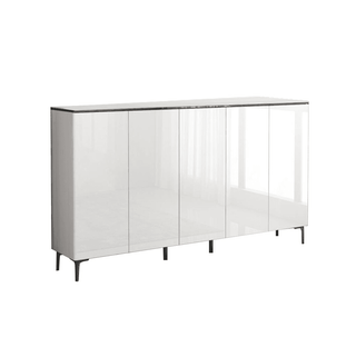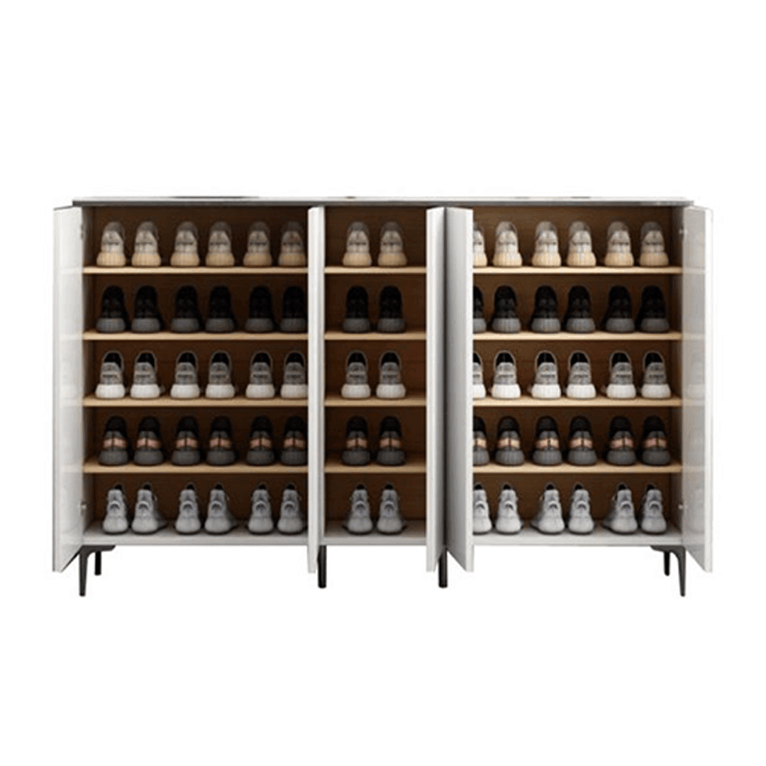 Adorned with a sintered stone top, the Musto Sintered Stone 5-Door Shoe Cabinet boasts a visually striking appearance and offers exceptional durability and resistance to daily wear and tear. The cabinet’s glossy facade is incredibly easy to clean and maintain, standing up to the hustle and bustle of busy households. Inside, five layers of shelves provide ample storage space for an extensive collection of footwear. Plus, its elegant chrome metal legs ensure its stability and durability.