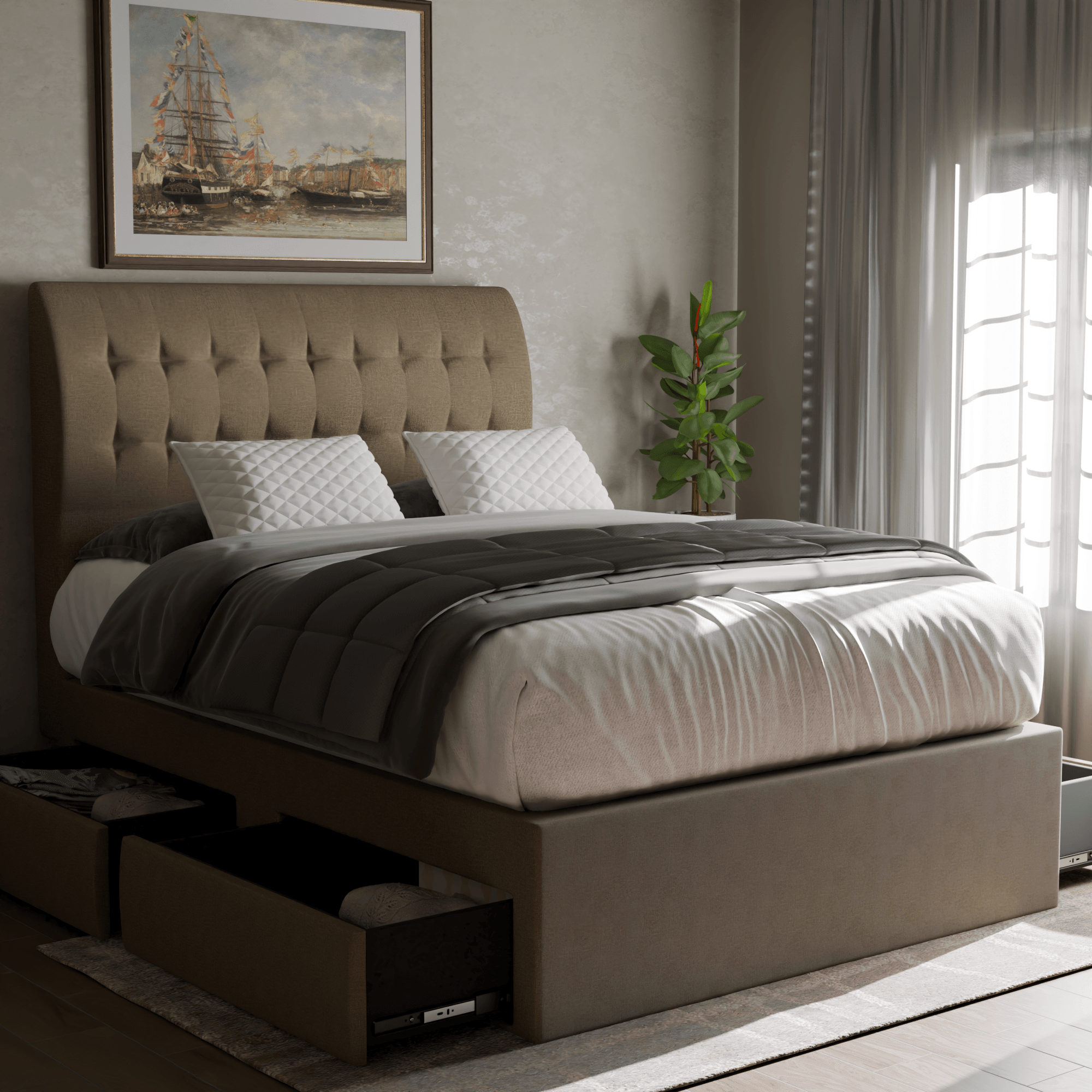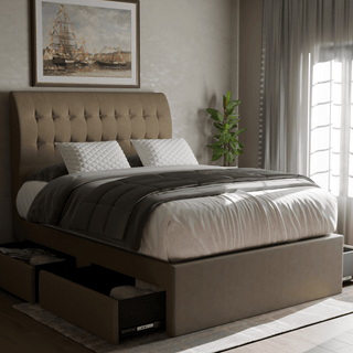 Upgrade the aesthetic and practicality of your bedroom with the Nette Fabric Drawer Bed Frame. This luxurious bed frame boasts premium fabric upholstery that exudes elegance while ensuring durability for lasting enjoyment. Its hidden storage compartment underneath the mattress provides ample space for storing extra bedding, pillows, or other essentials, keeping your space effortlessly organized. Elevate your sleep experience with this sophisticated and functional bed frame.