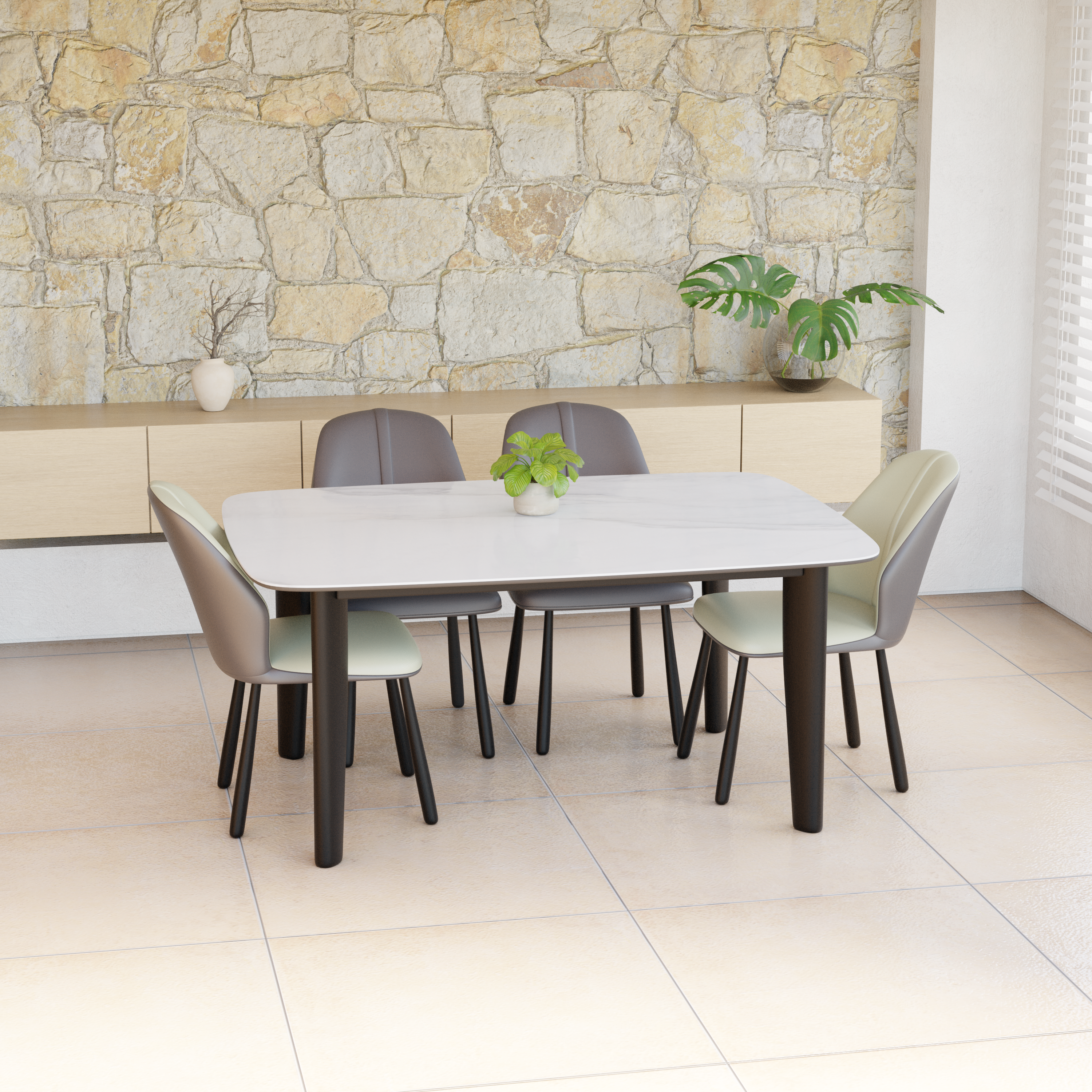 Elevate your dining experience with the Pam Sintered Stone Dining Set. This sophisticated ensemble features a premium sintered stone tabletop, renowned for its exceptional durability and resistance to scratches, heat, and stains. The sleek, contemporary design creates an elegant focal point for your dining area while providing the perfect canvas for memorable gatherings. Meticulously crafted with attention to detail, this dining set combines refined aesthetics with practical functionality for enduring elegance.