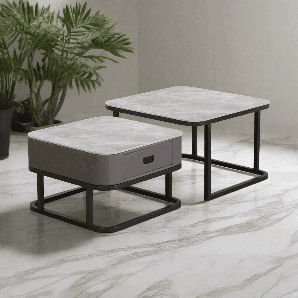 Looking for a sleek, tough and versatile addition to your day-to-day? Penelope Sintered Stone Coffee Table is here to save the day! This modern marvel is the perfect piece for any occasion - be it a laid-back hangout or a cozy night in. And the best part? Its top is crafted from sintered stone, prized for its unbeatable durability and resistance to scratches, stains, and heat. Plus, its clever nesting design frees up space in a snap!