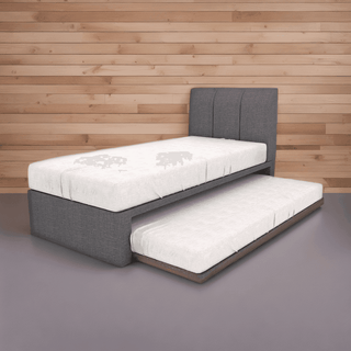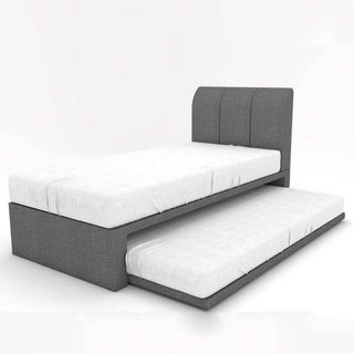 Specially designed for shared rooms, Princeton 3 In 1 Fabric Pull Out Bed Frame offers a spacious upholstered bed frame made with high-quality water resistant synthetic leather and auto-spring lift system trundle bed.