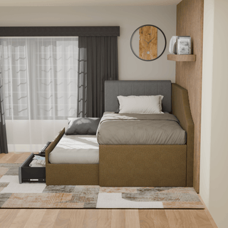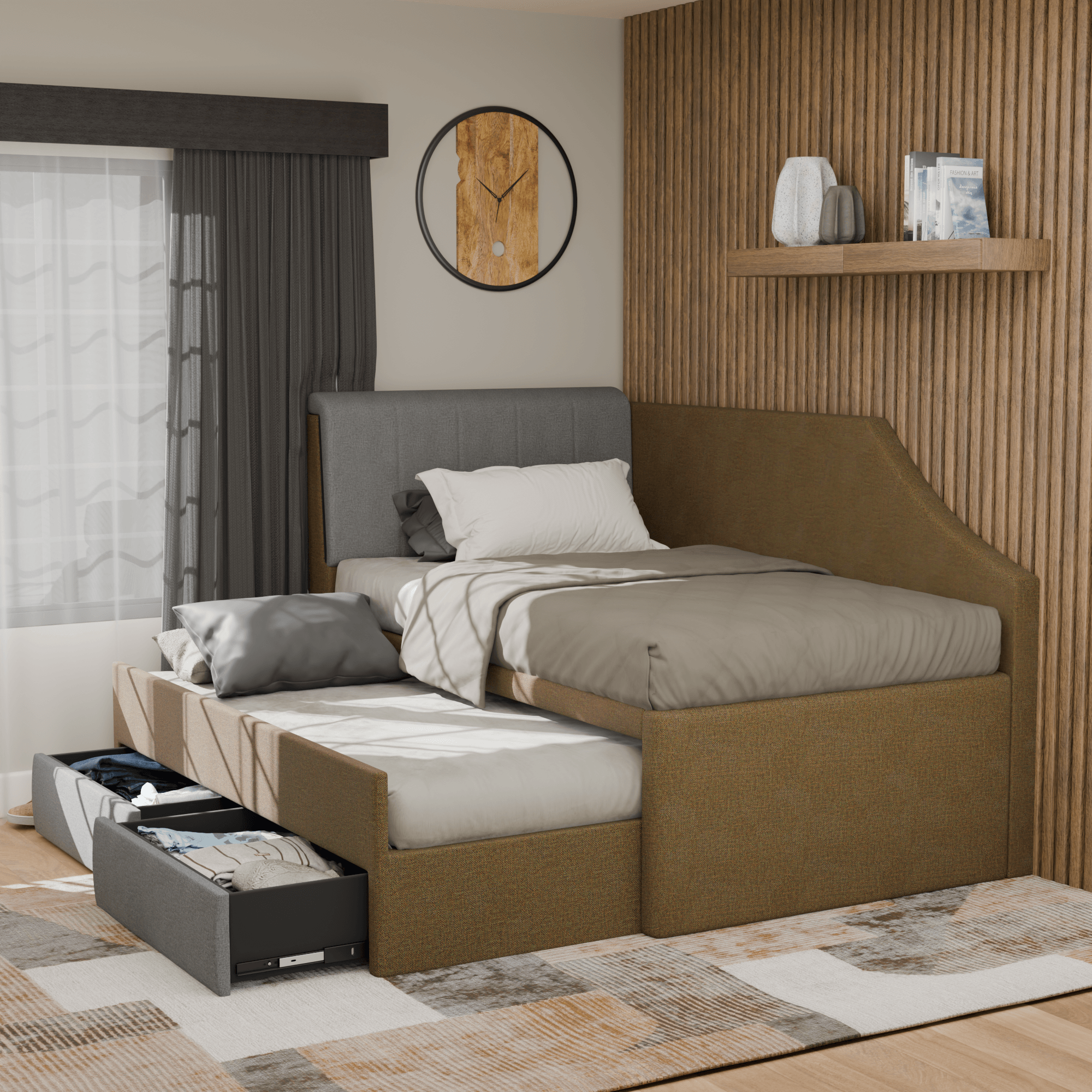Trundle beds are some of the best solutions to maximise the use of your room. Ideal for guest rooms or shared rooms, this 3 in 1 fabric bed will definitely help you make the most out of your limited space. Made with high-quality fabric, carefully assembled frame, and cushioned headboard.