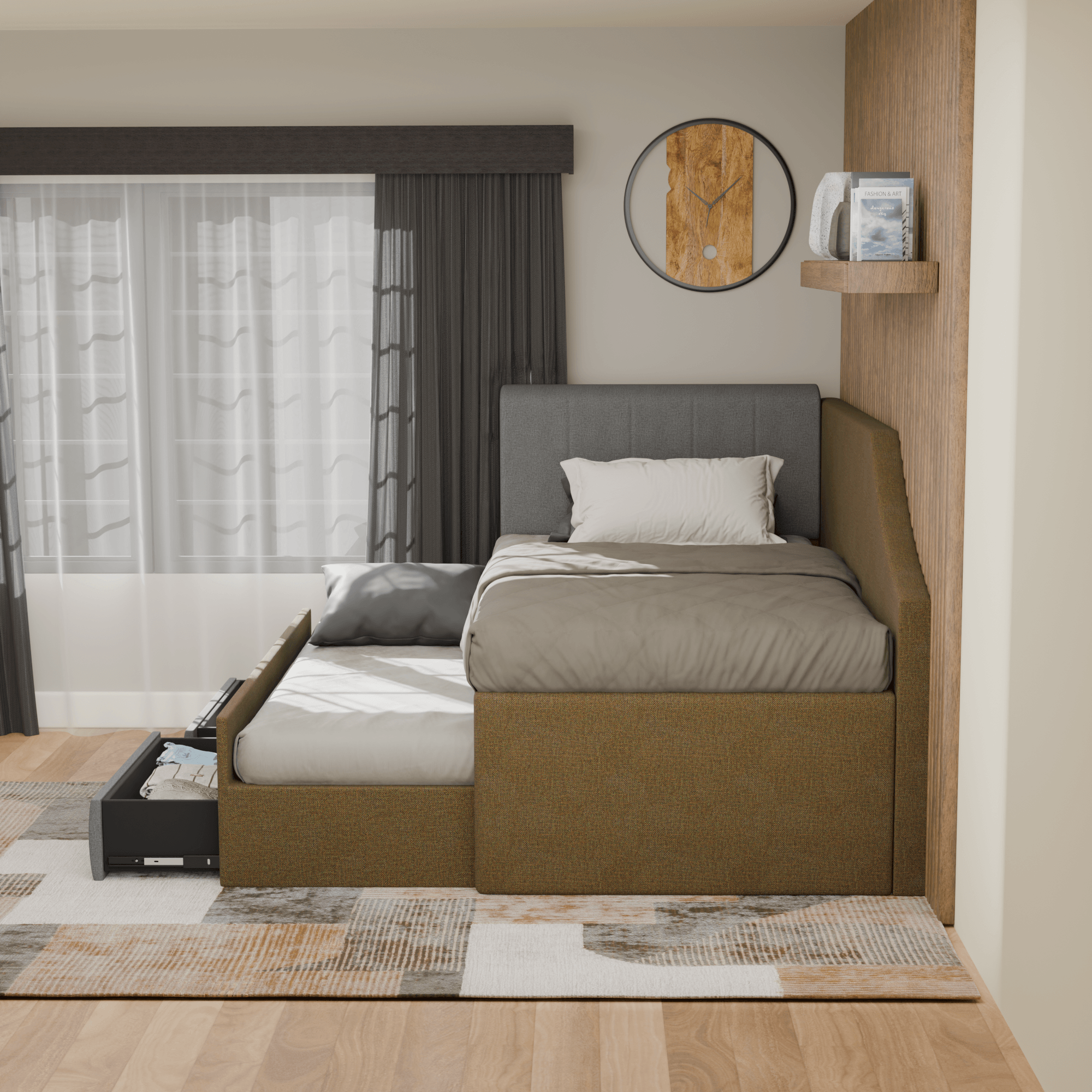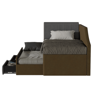 Quinslet Fabric Pull Out Bed with Drawer Storage