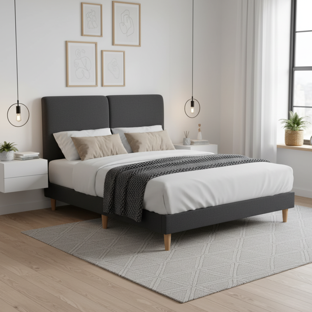Looking for an elegant way to upgrade the quality of your sleep? Razi Fabric Bed Frame presents a modern minimalist look and supportive comfort with its padded headboard. This simple bed frame can blend well with any interior style while it provides a sturdy base for your comfortable mattress.