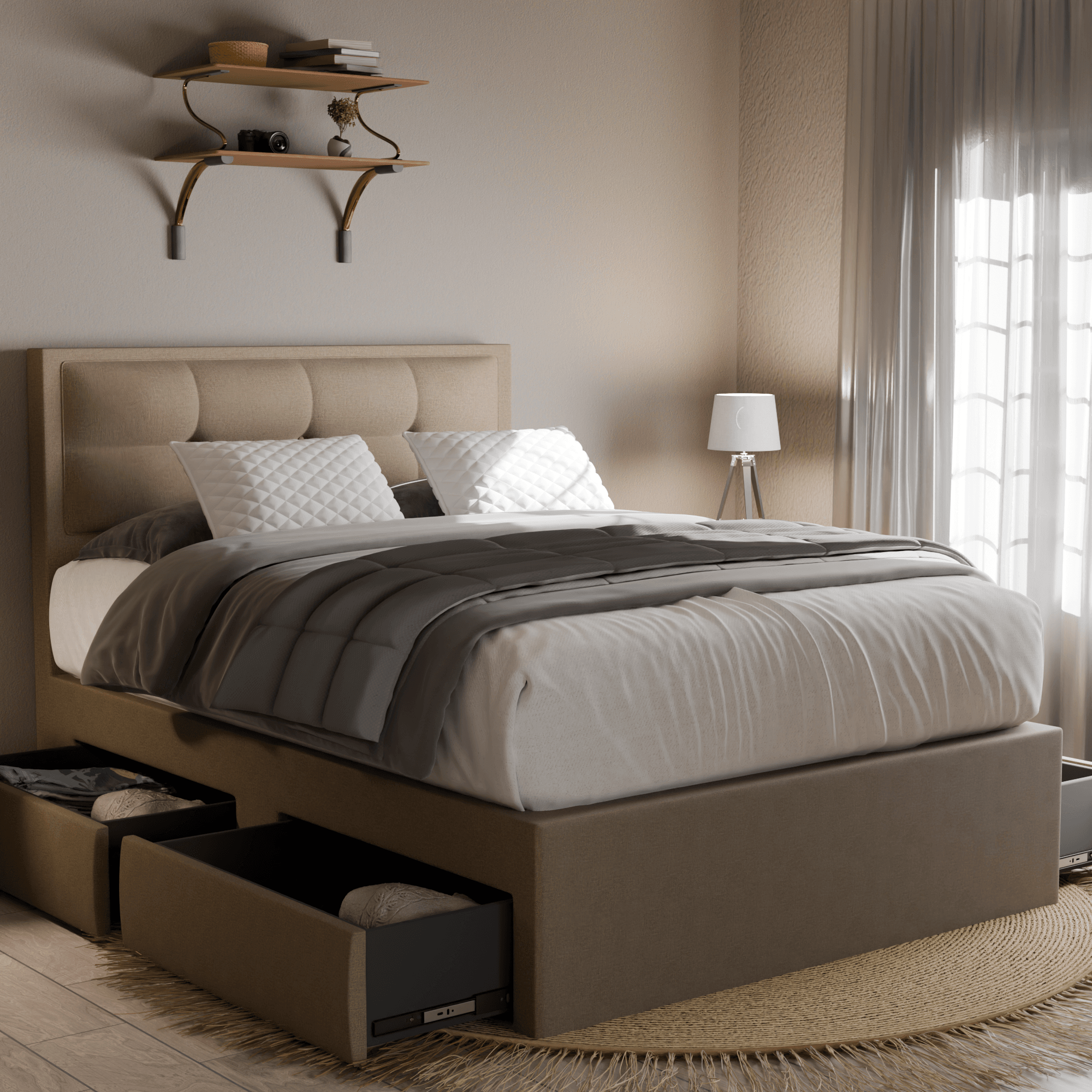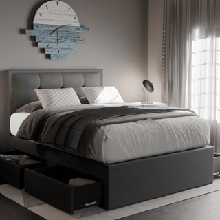 Indulge in luxury and functionality with the Robyn Fabric Drawer Bed Frame. This elegant bed frame features a plush fabric design and built-in drawers for added storage. Elevate your bedroom decor with this exclusive and sophisticated piece.