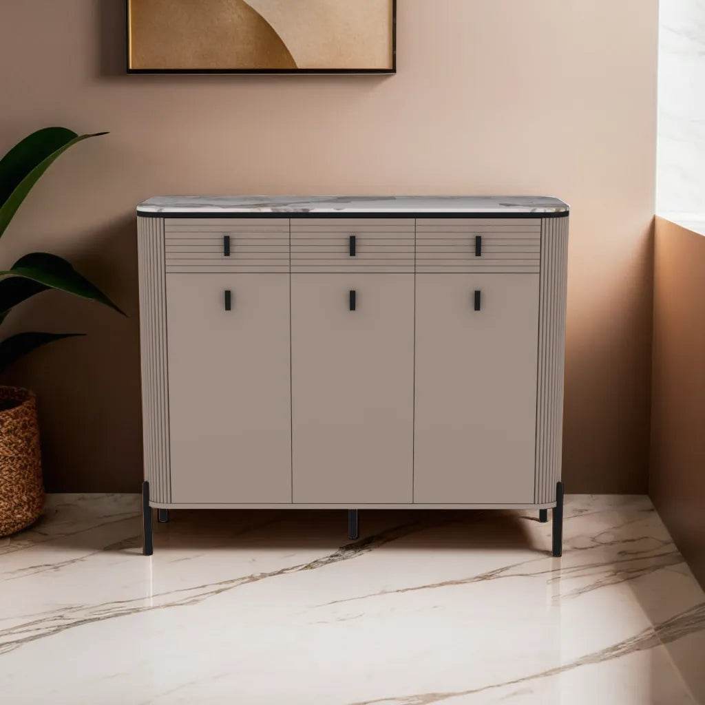 Sabino 3 Door Shoe Cabinet with Glossy Sintered Stone Top