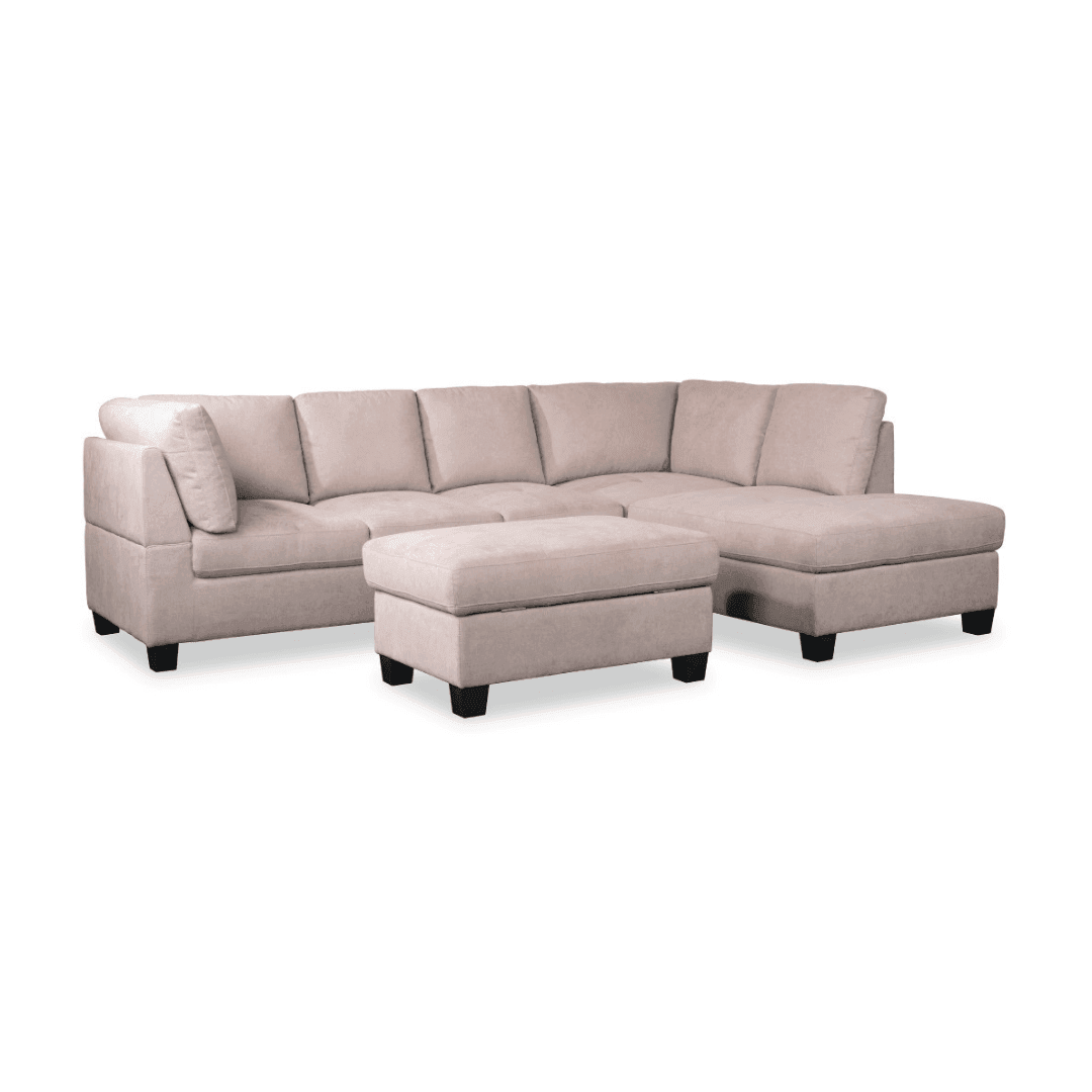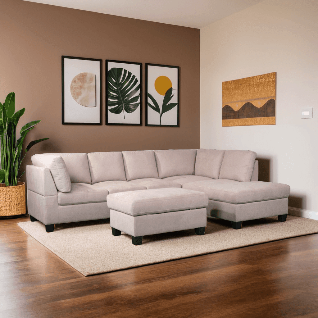 Tatsuo Fabric L-Shaped Sectional Sofa w Storage Ottoman