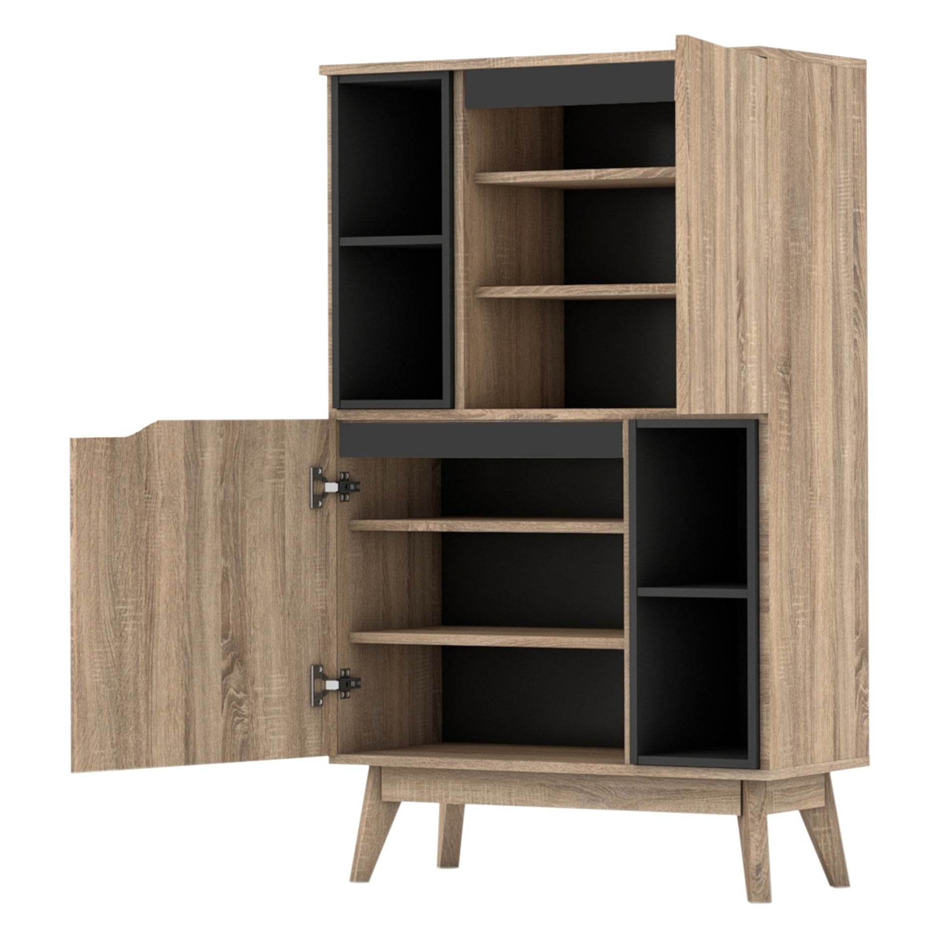 - Dual functionality: Open shelves for display, closed cabinet for hidden storage.